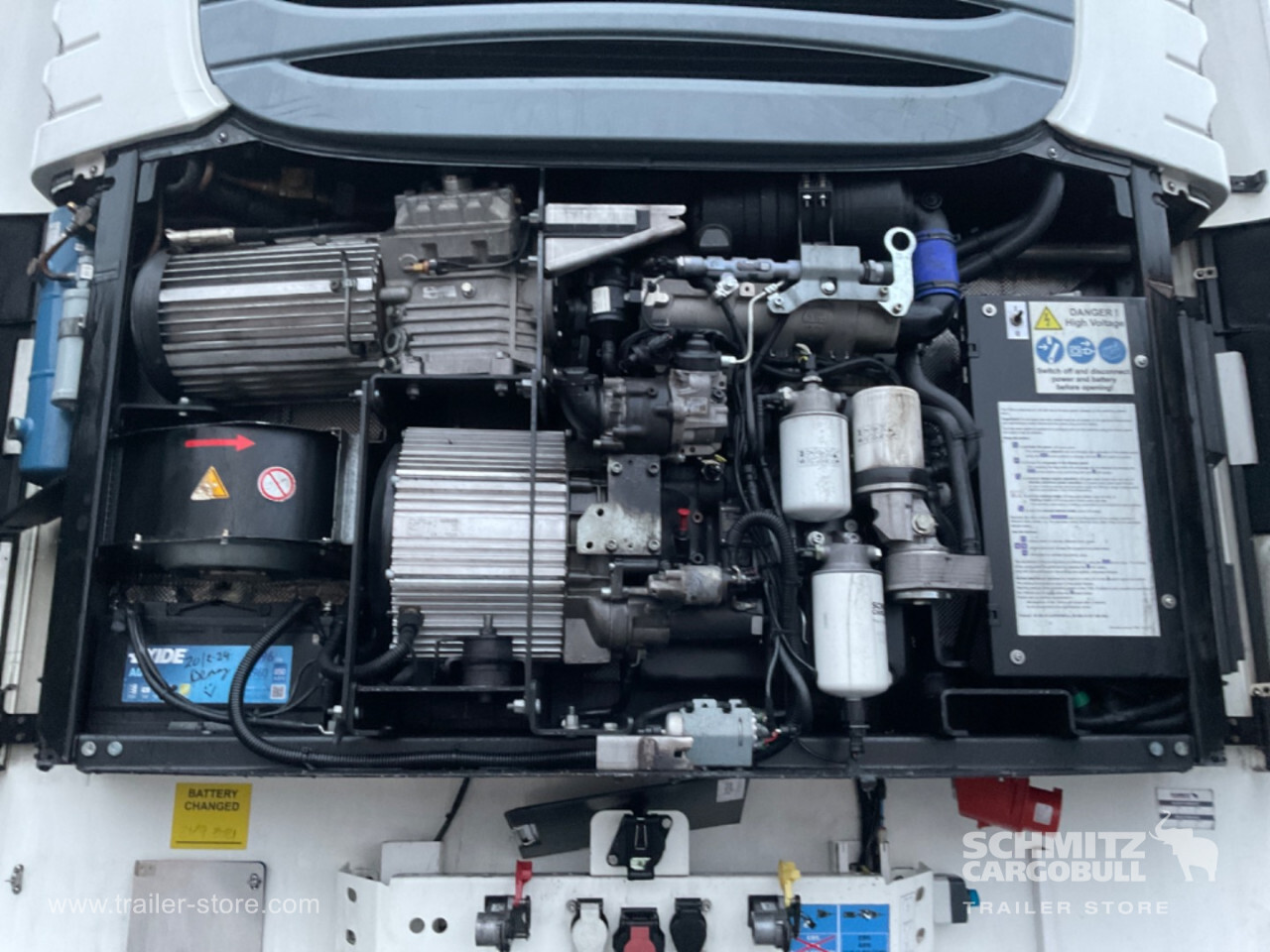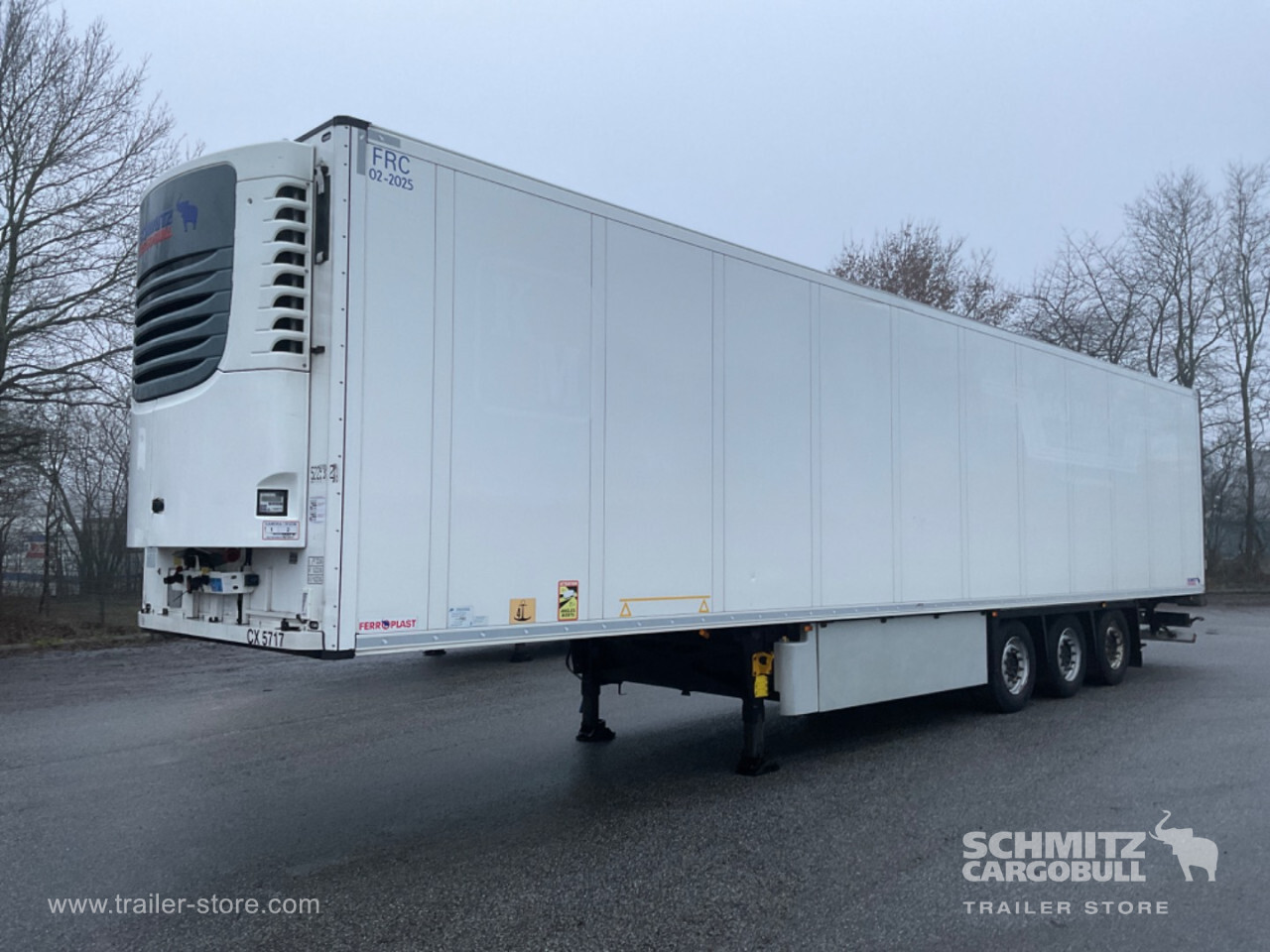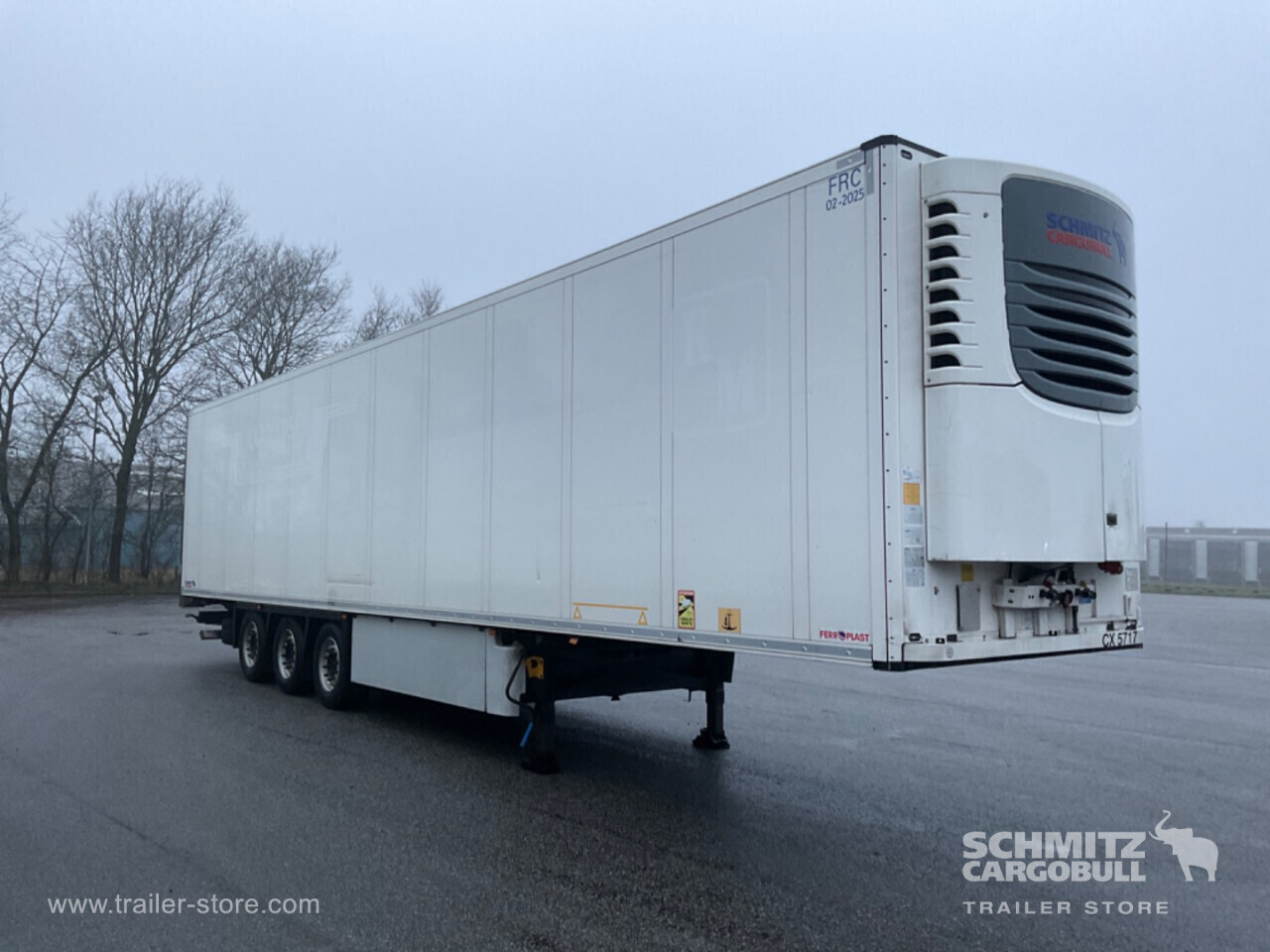 Remarks: **Safety**\\Fixed rear underrun, Antilock Braking System ABS\\\\**Interior**\\ISO partition wall without ventilators, Double deck with beams\\\\**Exterior**\\Air suspension, Pallet box (double), Spare wheel carrier, Ferry lashings, 1x15 and 2x7 pin plug, Antispray, Customs sealing capability\\\\**Brake system**\\Disc brake, Schmitz ROTOS\\\\**Floor**\\Aluminum floor\\\\**Cooling unit**\\Schmitz Cargobull, Diesel/Elektro, 22.948 Operating hours Diesel, 783 Operating hours electric\\\\**Loading area**\\Length 13.410 mm, Width 2.490 mm, Height 2.650 mm, Volume 88 m³\\\\**Tyre sizes**\\ 385/55 R22.5 , 385/55 R22.5 , 385/55 R22.5\\\\----