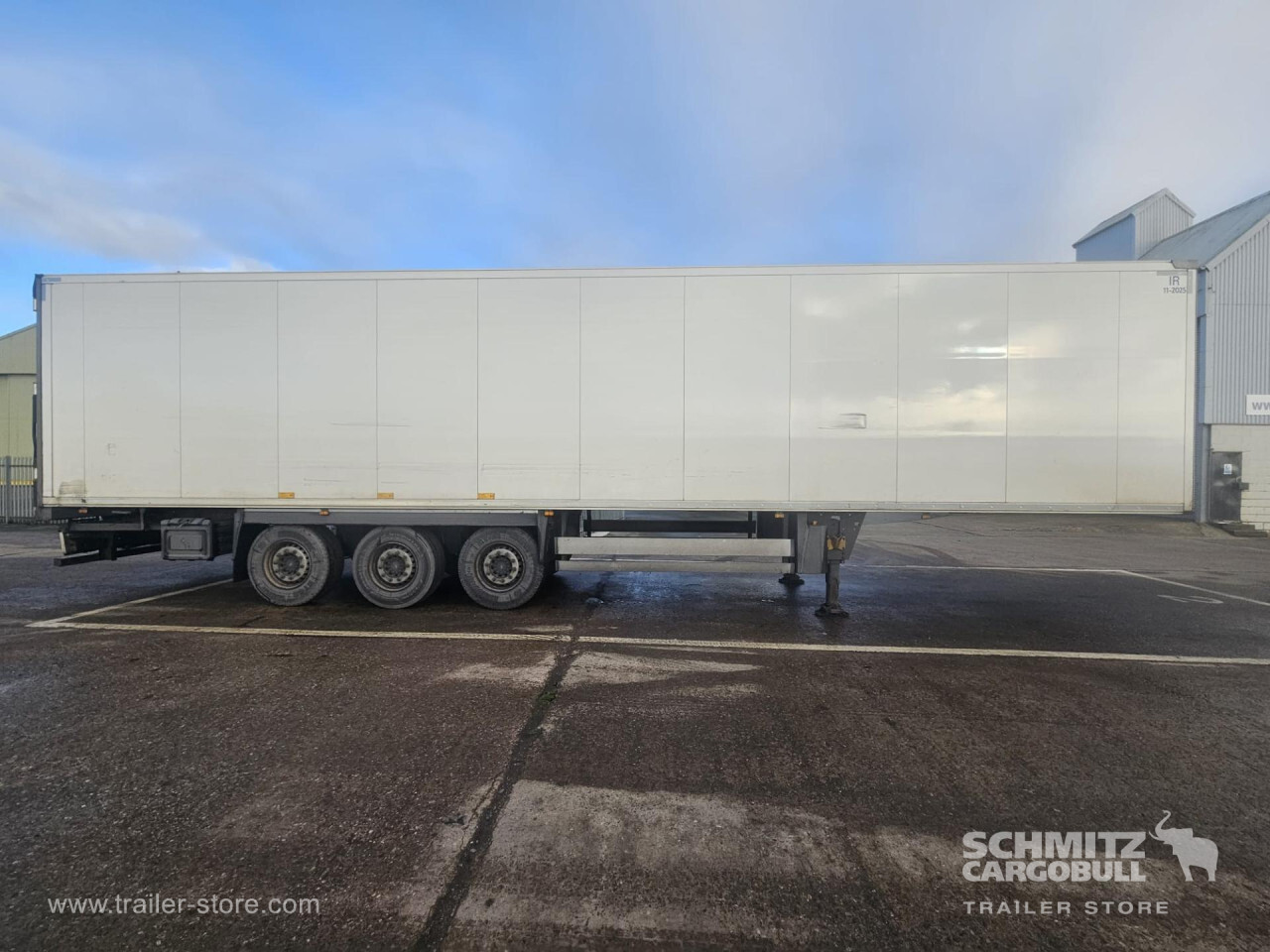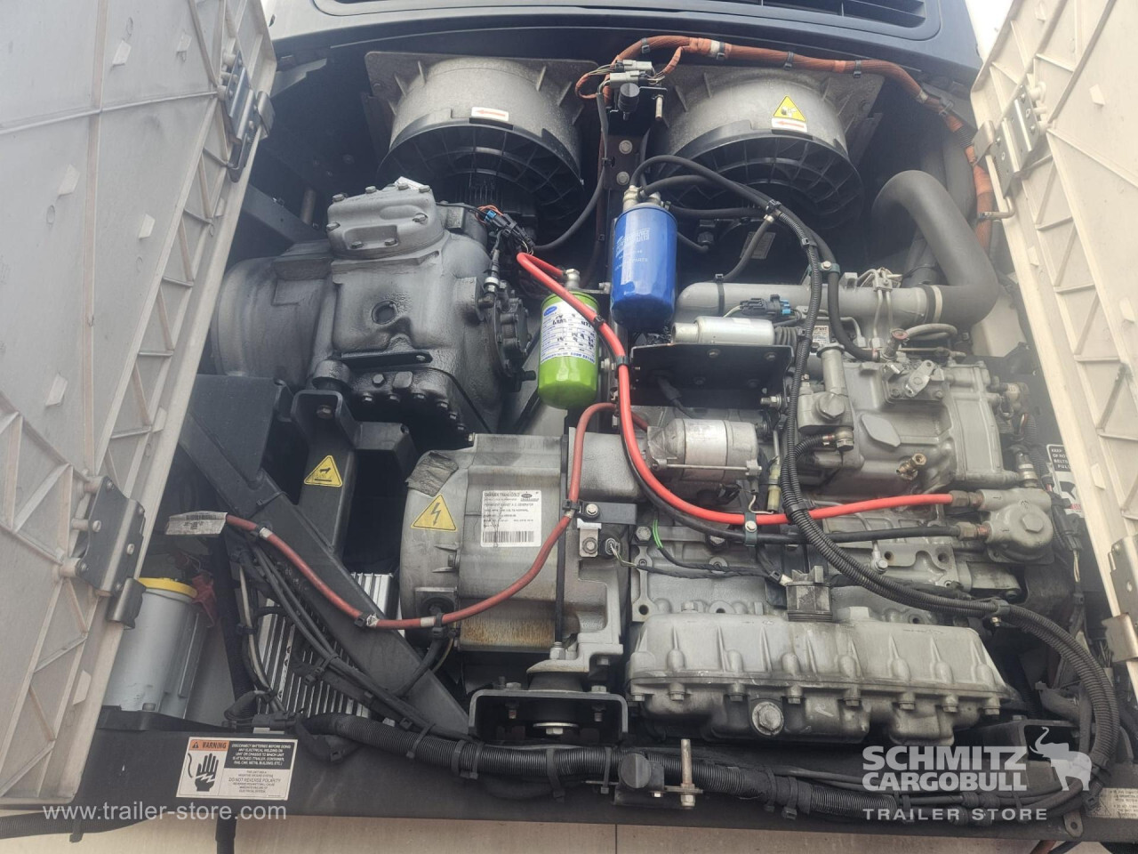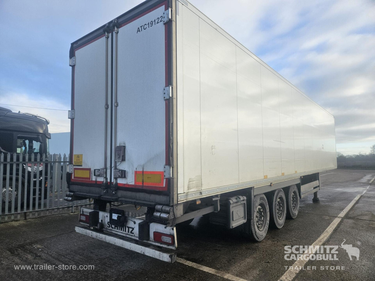Remarks: **Safety**\\Rear underrun, Antilock Braking System ABS\\\\**Exterior**\\Air suspension, Toolbox, Ferry lashings, 1x15 and 2x7 pin plug, Antispray\\\\**Further equipment**\\2 LED reverse (Banksman) lights on rear.5 Bar tread plate floor.Pair of V7 load securing rails.LED side marker lights coupled with indicators.Ultra bright interior lighting without rotary switch.\\\\**Cargo securing**\\Load securing rail\\\\**Brake system**\\Disc brake, Schmitz ROTOS\\\\**Floor**\\Aluminum floor\\\\**Cooling unit**\\Carrier Vector 1950 MT, Diesel/Elektro, 6.685 Operating hours Diesel, 431 Operating hours electric\\\\**Loading area**\\Length 13.403 mm, Width 2.490 mm, Height 2.600 mm, Volume 86 m³\\\\**Tyre sizes**\\ 385/65 R22.5 , 385/65 R22.5 , 385/65 R22.5\\\\**Other dimensions and weights**\\Payload: 30.424 kg, GVW: 39.000 kg, Wheel base: 7.600 mm\\\\----