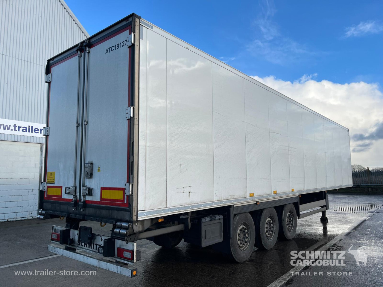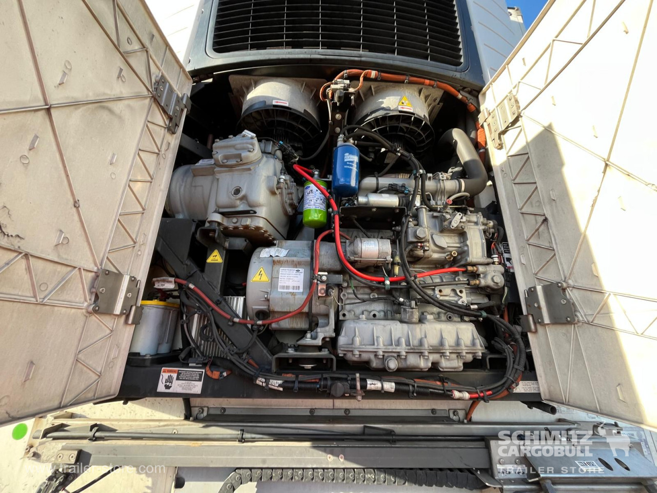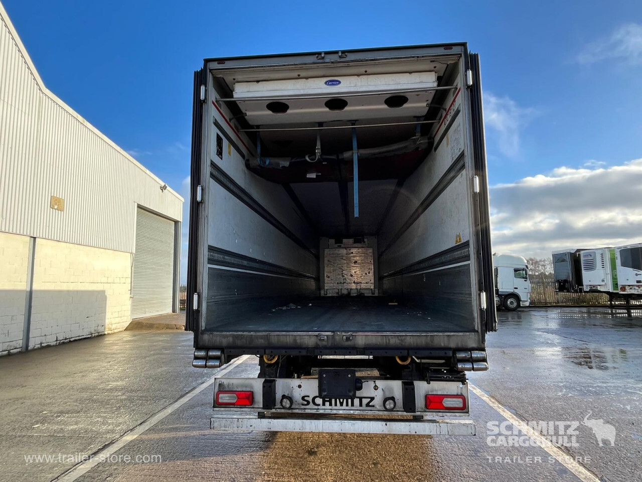Remarks: **Safety**\\Rear underrun, Antilock Braking System ABS\\\\**Exterior**\\Air suspension, Toolbox, Ferry lashings, 1x15 and 2x7 pin plug, Antispray\\\\**Further equipment**\\2 LED reverse (Banksman) lights on rear.5 Bar tread plate floor.Pair of V7 load securing rails.LED side marker lights coupled with indicators.Ultra bright interior lighting without rotary switch.\\\\**Cargo securing**\\Load securing rail\\\\**Brake system**\\Disc brake, Schmitz ROTOS\\\\**Floor**\\Aluminum floor\\\\**Cooling unit**\\Carrier Vector 1950 MT, Diesel/Elektro, 7.013 Operating hours Diesel, 458 Operating hours electric\\\\**Loading area**\\Length 13.403 mm, Width 2.490 mm, Height 2.600 mm, Volume 86 m³\\\\**Tyre sizes**\\ 385/65 R22.5 , 385/65 R22.5 , 385/65 R22.5\\\\**Other dimensions and weights**\\Payload: 30.424 kg, GVW: 39.000 kg, Wheel base: 7.600 mm\\\\----