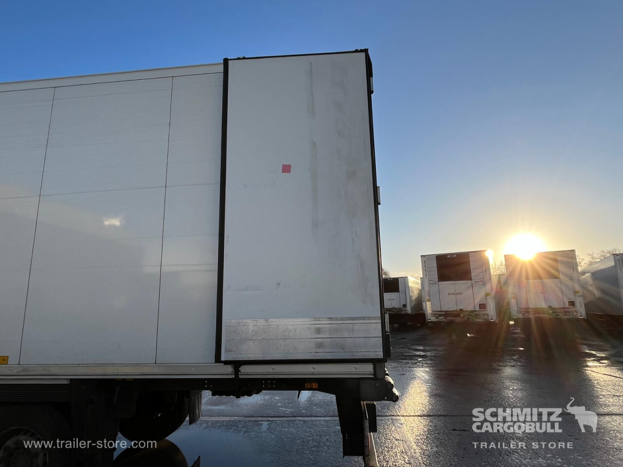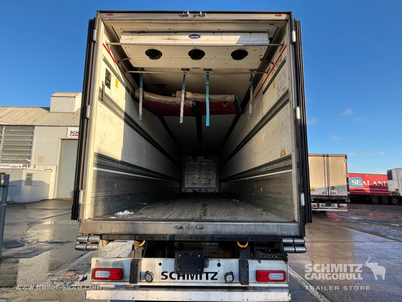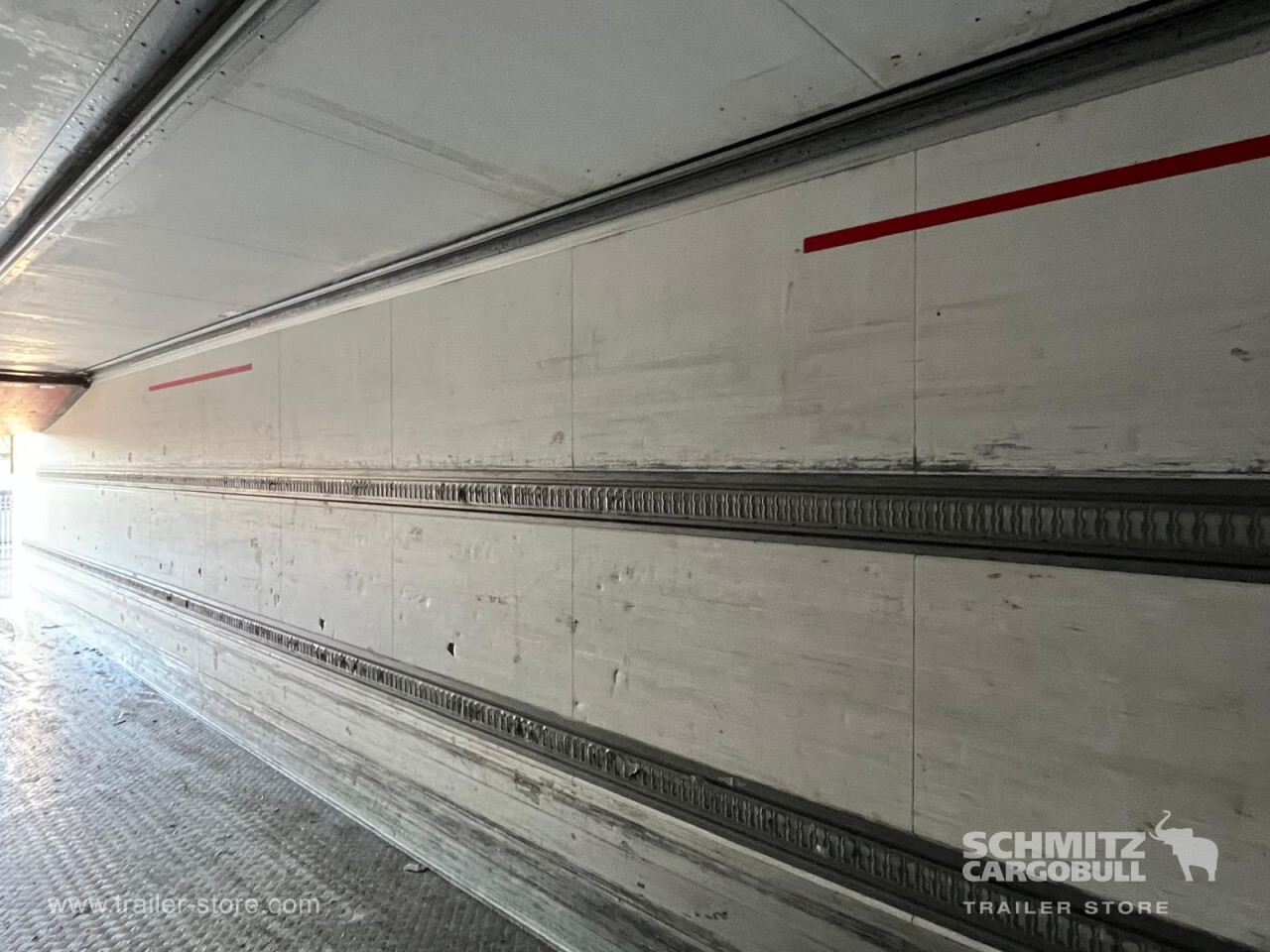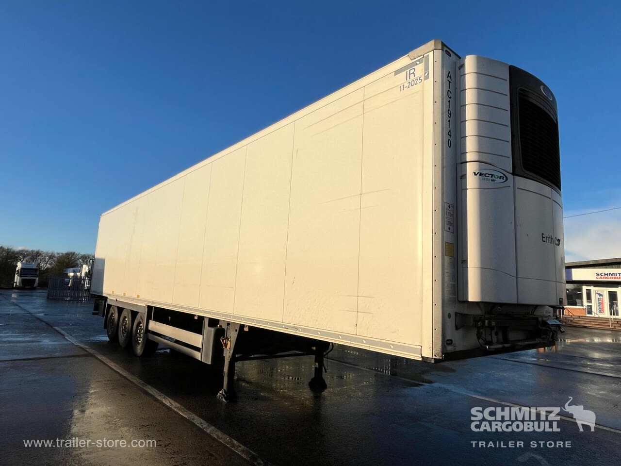 Remarks: **Safety**\\Rear underrun, Antilock Braking System ABS\\\\**Exterior**\\Air suspension, Toolbox, Ferry lashings, 1x15 and 2x7 pin plug, Antispray\\\\**Further equipment**\\2 LED reverse (Banksman) lights on rear.5 Bar tread plate floor.Pair of V7 load securing rails.LED side marker lights coupled with indicators.Ultra bright interior lighting without rotary switch.\\\\**Cargo securing**\\Load securing rail\\\\**Brake system**\\Disc brake, Schmitz ROTOS\\\\**Floor**\\Aluminum floor\\\\**Cooling unit**\\Carrier Vector 1950 MT, Diesel/Elektro, 6.760 Operating hours Diesel, 461 Operating hours electric\\\\**Loading area**\\Length 13.403 mm, Width 2.490 mm, Height 2.600 mm, Volume 86 m³\\\\**Tyre sizes**\\ 385/65 R22.5 , 385/65 R22.5 , 385/65 R22.5\\\\**Other dimensions and weights**\\Payload: 30.424 kg, GVW: 39.000 kg, Wheel base: 7.600 mm\\\\----