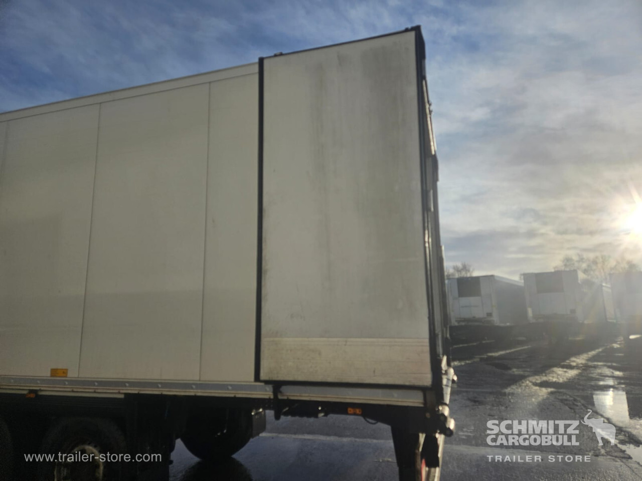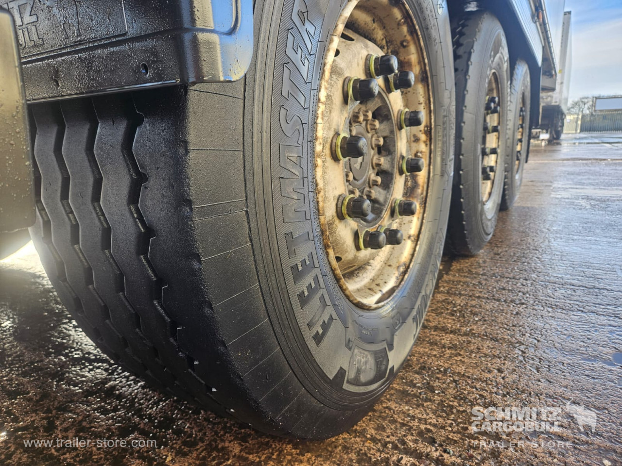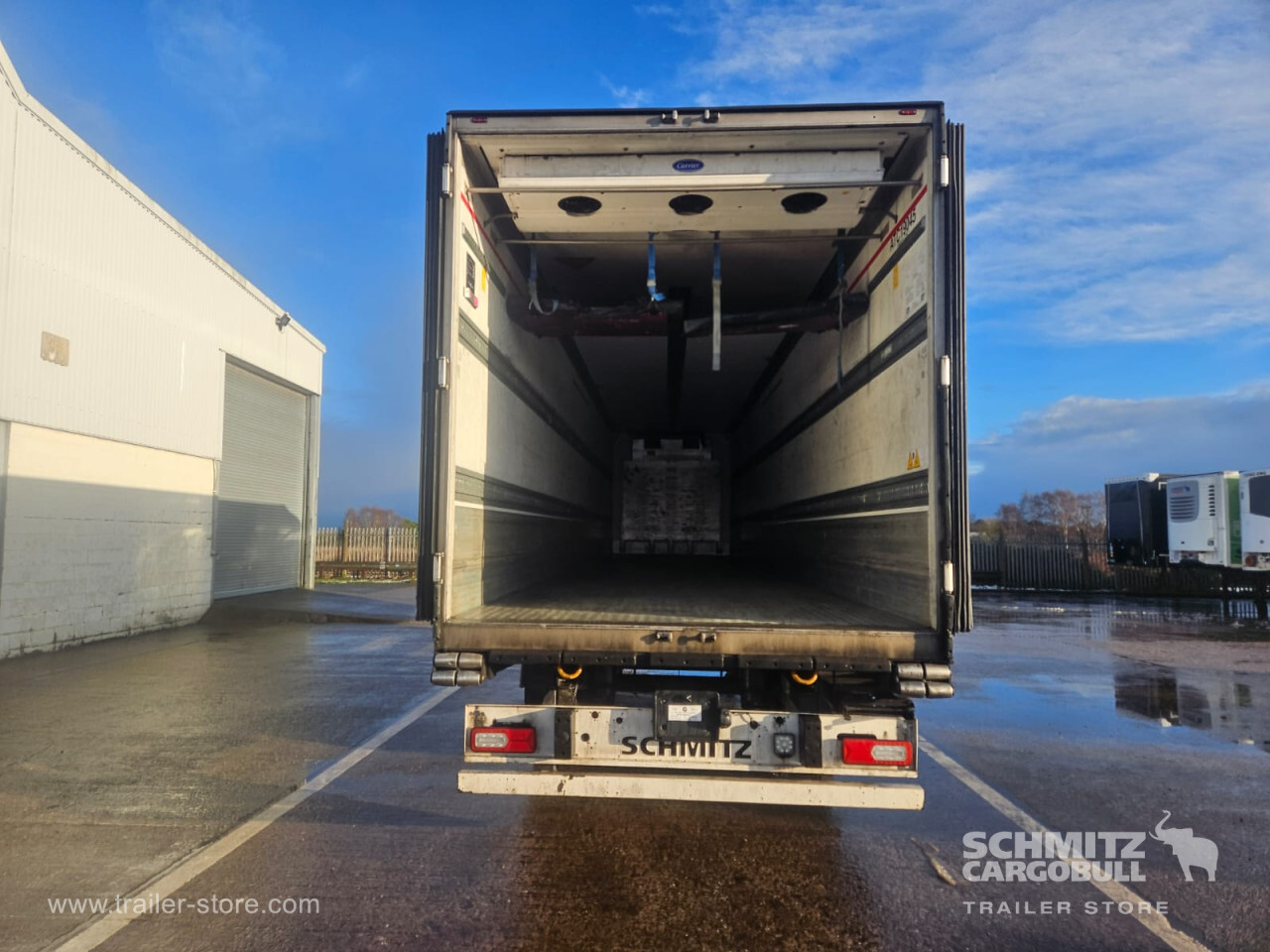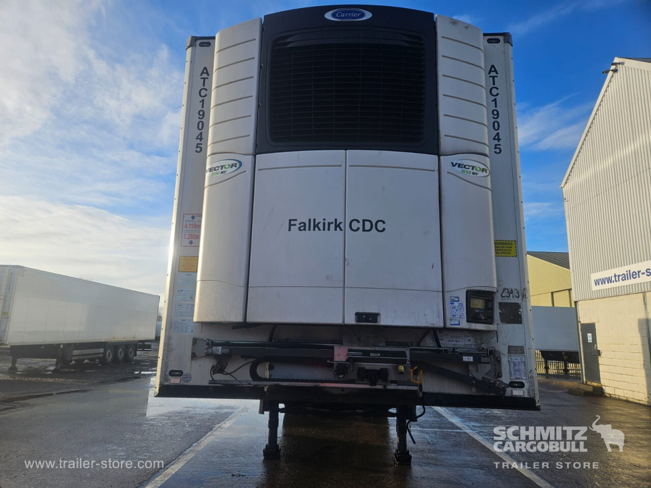 Remarks: **Safety**\\Rear underrun, Antilock Braking System ABS\\\\**Exterior**\\Air suspension, Toolbox, Ferry lashings, 1x15 and 2x7 pin plug, Antispray\\\\**Further equipment**\\2 LED reverse (Banksman) lights on rear.5 Bar tread plate floor.Pair of V7 load securing rails.LED side marker lights coupled with indicators.Ultra bright interior lighting without rotary switch.\\\\**Cargo securing**\\Load securing rail\\\\**Brake system**\\Disc brake, Schmitz ROTOS\\\\**Floor**\\Aluminum floor\\\\**Cooling unit**\\Carrier Vector 1950 MT, Diesel/Elektro, 10.305 Operating hours Diesel, 30 Operating hours electric\\\\**Loading area**\\Length 13.403 mm, Width 2.490 mm, Height 2.600 mm, Volume 86 m³\\\\**Tyre sizes**\\ 385/65 R22.5 , 385/65 R22.5 , 385/65 R22.5\\\\**Other dimensions and weights**\\Payload: 30.424 kg, GVW: 39.000 kg, Wheel base: 7.600 mm\\\\----
