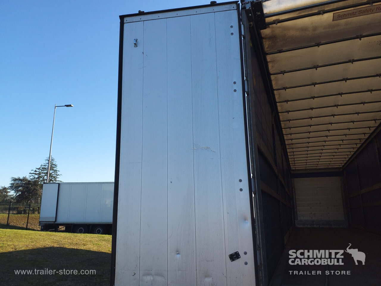 Remarks: **Safety**\\Rear underrun, Antilock Braking System ABS, Fire extinguisher holder\\\\**Exterior**\\Air suspension, Spare wheel carrier double, Ferry lashings, Bolted chassis, Sliding roof, 1x15 and 2x7 pin plug, Antispray\\\\**Cargo securing**\\Cargo securing with certificate, DIN EN 12642 (code XL) certificate\\\\**Brake system**\\Disc brake, Schmitz ROTOS\\\\**Floor**\\Wooden floor, Lashing rings in floor\\\\**Loading area**\\Length 13.620 mm, Width 2.480 mm, Height 2.780 mm, Volume 93 m³\\\\**Tyre sizes**\\1. Achse: 385/65 R22.5 , Tread depth: 11 mm / 10 mm, 2. Achse: 385/65 R22.5 , Tread depth: 9 mm / 9 mm, 3. Achse: 385/65 R22.5 , Tread depth: 12 mm / 12 mm\\\\**Other dimensions and weights**\\GVW: 38.000 kg\\\\----Disques de frein Essieu 1 41,1mm Plaquettes de frein Essieu 1 10% usureDisques de frein Essieu 2 41,00mm Plaquettes de frein Essieu 2 10% usureDisques de frein Essieu 3 41,3mm Plaquettes de frein Essieu 3 10% d'usureMines 07/2026 -