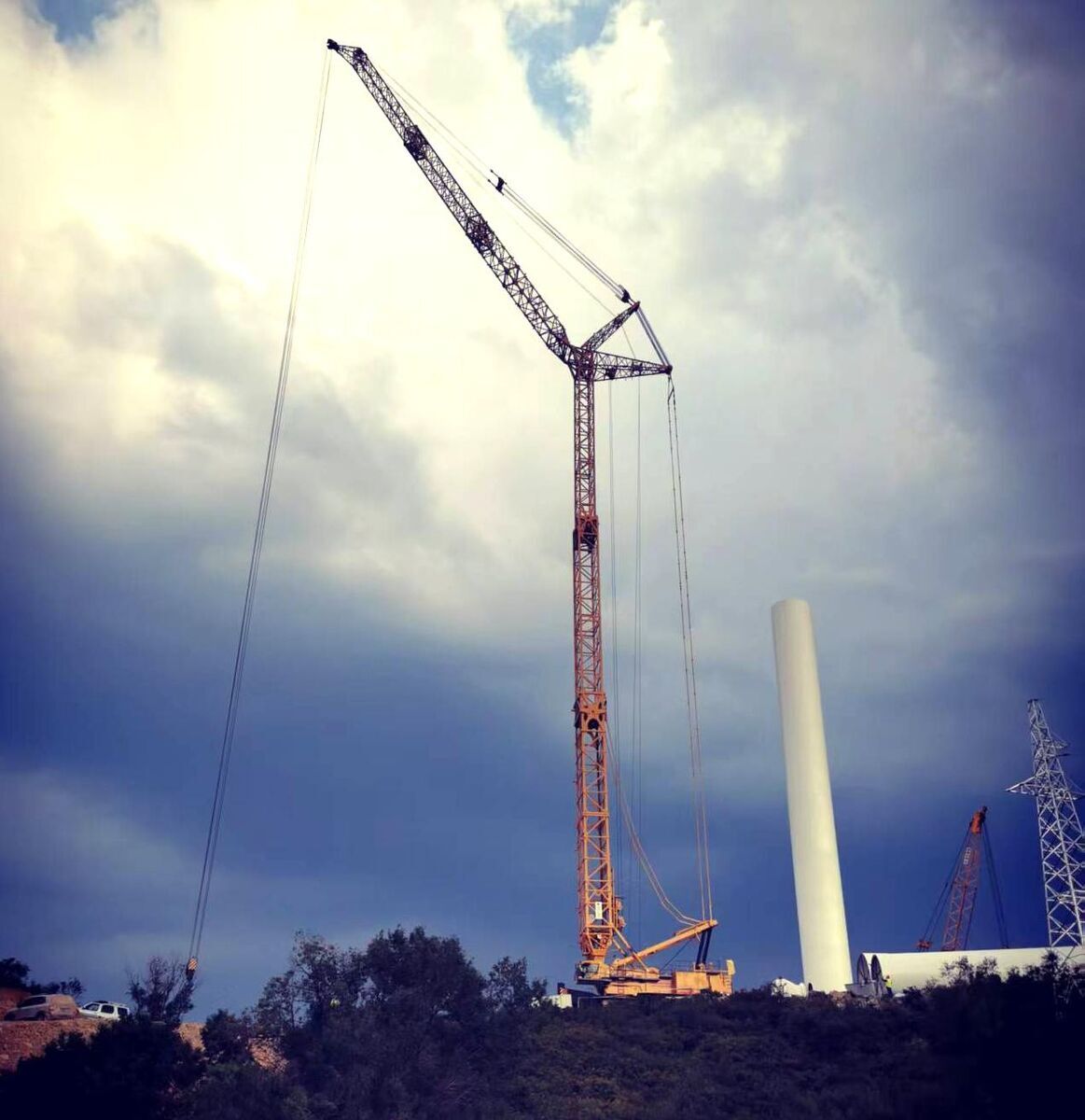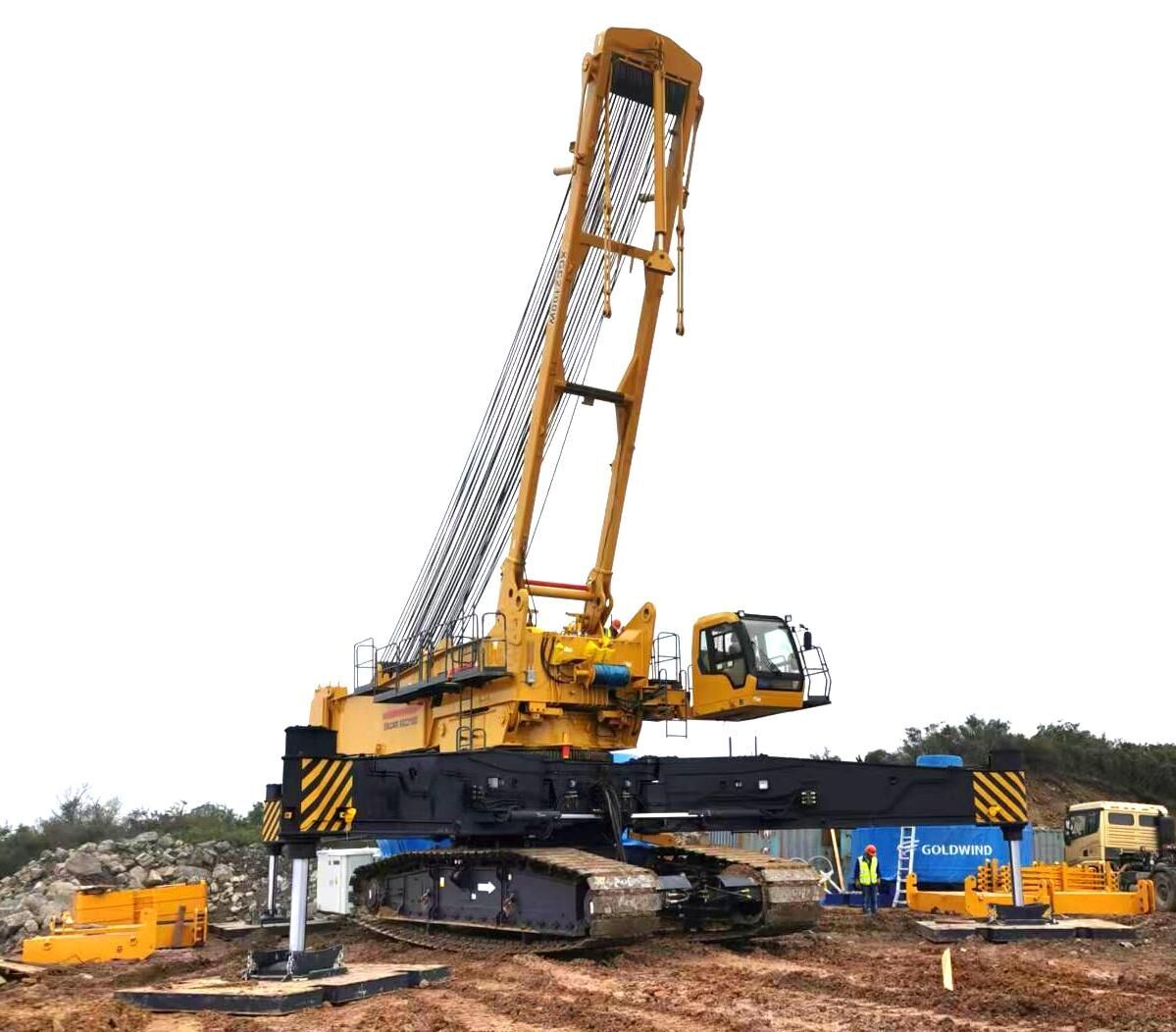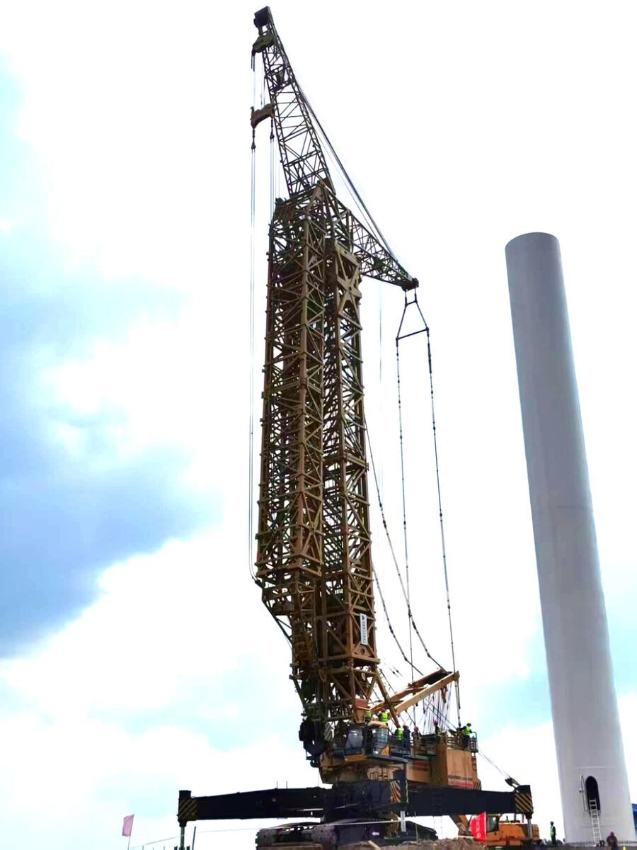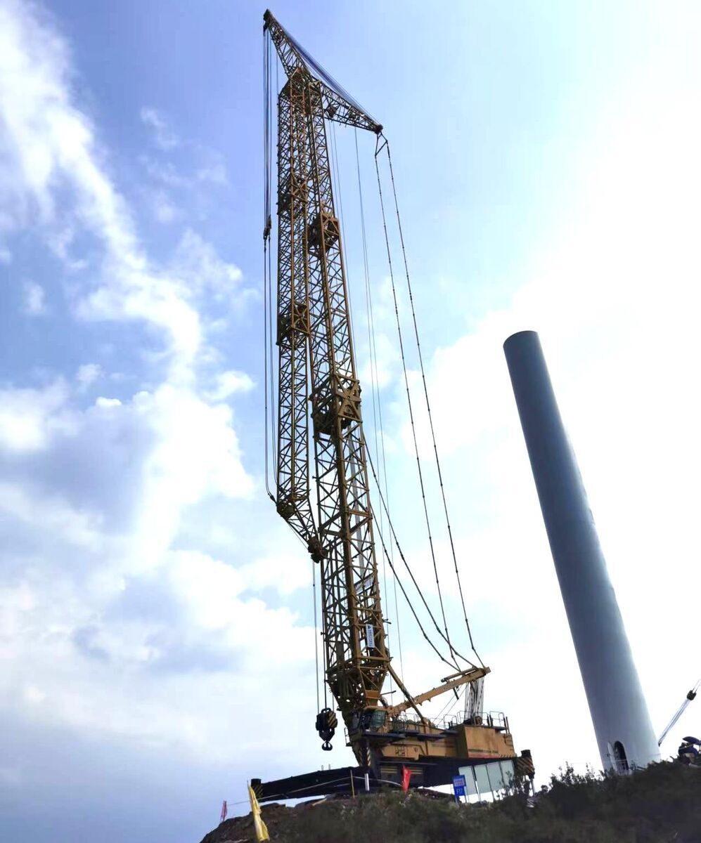 The XGC2100W crawler crane is a lifting machinery developed for the installation, maintenance, and overhaul of onshore wind turbines in hilly and mountainous terrain with limited working space and harsh transition ground conditions. It can meet the lifting requirements of wind turbines up to 120m high, below 2.5MW, and some 125m high.