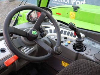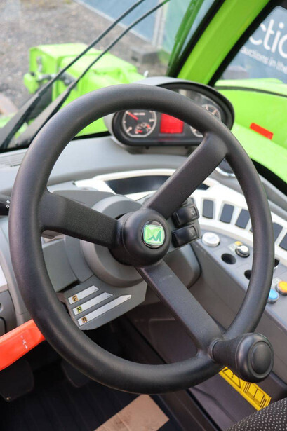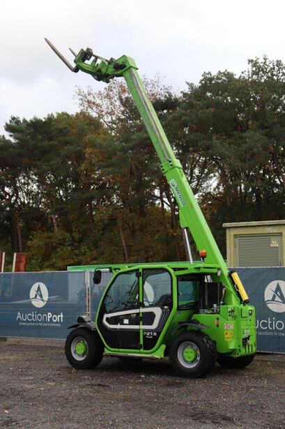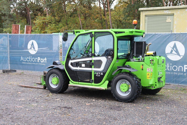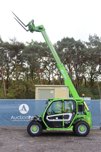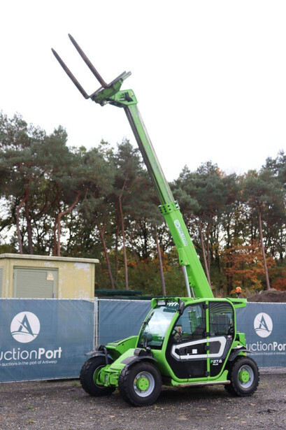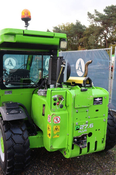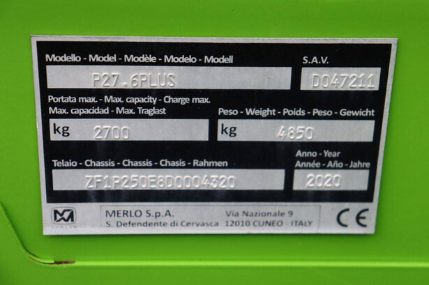 Brand: Merlo Type: P27.6 Plus Serial number: ZF1P250E8D0004320 Year of construction: 2020 Fuel: Diesel Engine power: 55 kW Engine Brand: Kohler Lifting capacity: 2700 kg Lifting height: 6000 mm Operating hours read: 7746 h Machine weight: 4850 kg Tires: Pneumatic tires Color: green