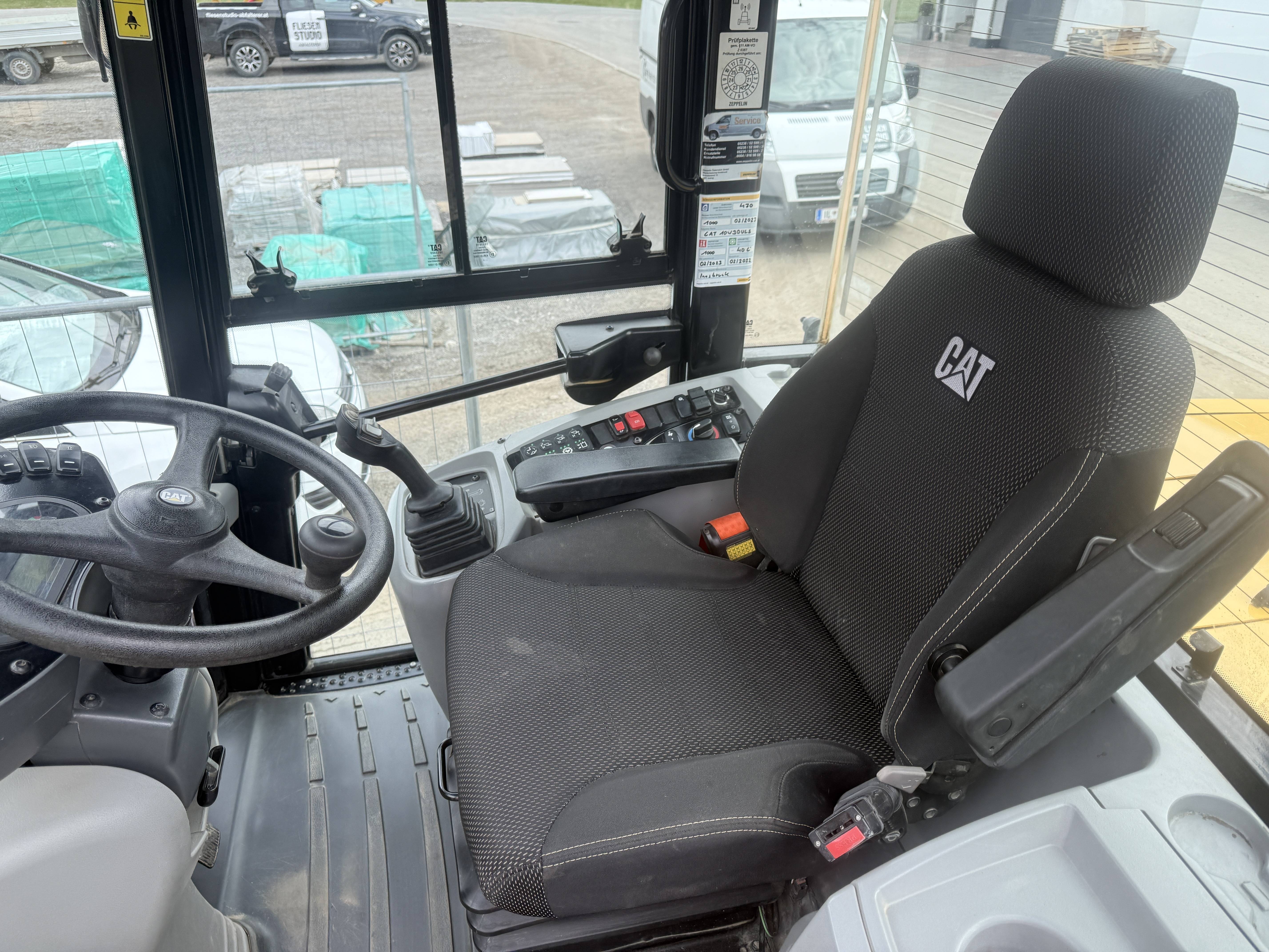 CAT 910 Weight around ca. 8.200kg Engine / Type CAT C3.6 Power / HP / KW 101/ 74 Emission standard V Tires / type / size Michelin 15.5 R25 *front in % good ca 70% good *back in % good ca 70% good Speed 40 km/h shove (capacity approx. / type) Shovel with cutting edge 2400mm Quick coupler (brand) Quick coupler Cat Aircondition Aircondition Central lubrication Central lubrication rear view camera Yes backup warning system Yes Paint Oirignal EPA Yes CE-certificate CE-certified Location Plattling, Germany other details Forks