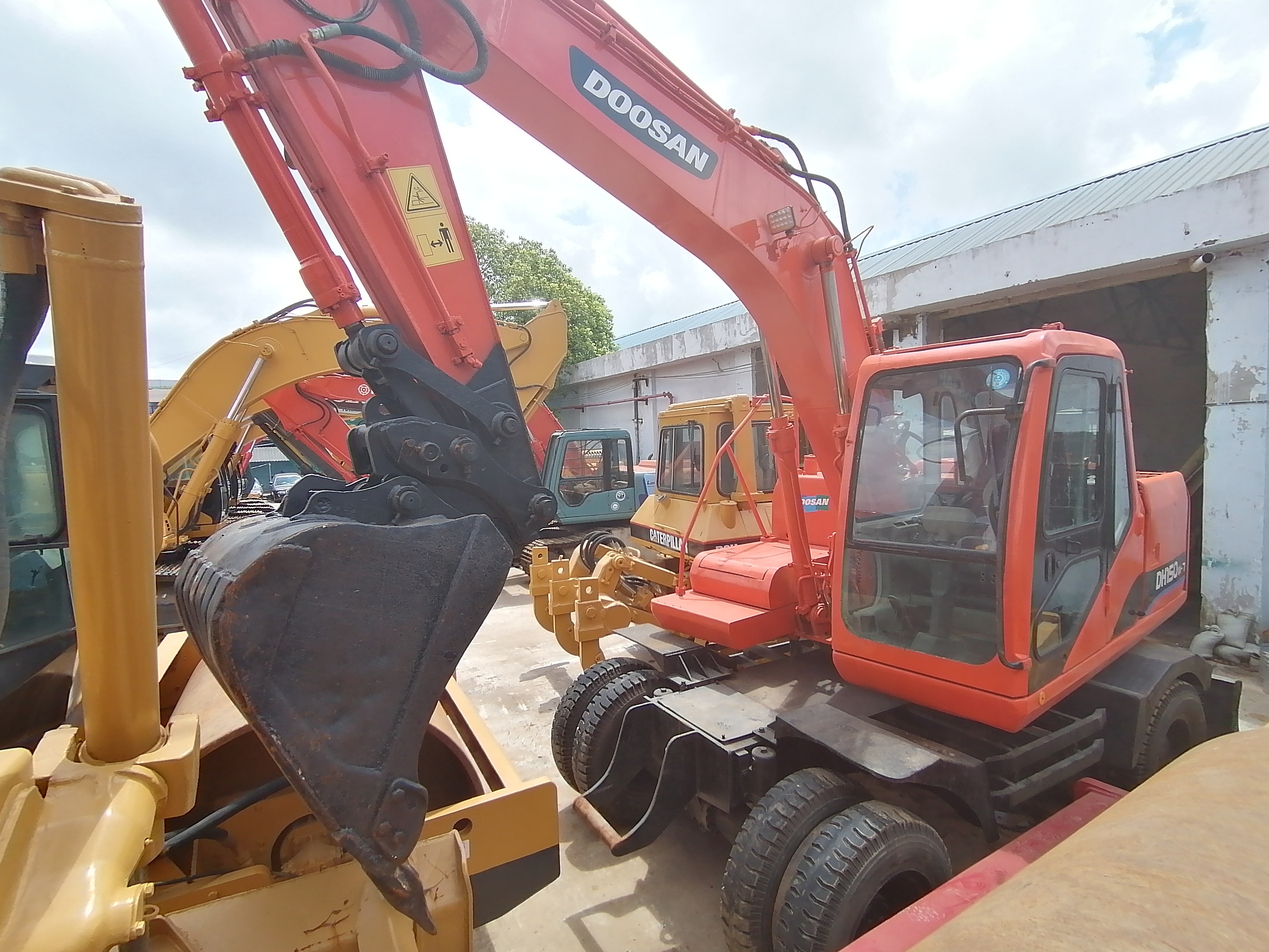Technical Specification Report: Doosan DH150W-7 Wheel Excavator Model & Brand: High-performance Doosan DH150W-7 wheel excavator, known for its extreme durability and high efficiency. Engine Power: Powered by a fuel-efficient Doosan DB58TIS 6-cylinder diesel engine, delivering a rated power of 98 kW (132 hp). Operating Weight: Features a standard operating weight of 14,000 - 15,000 kg (14-15 Tons) for heavy-duty stability. Working Range: Maximum digging depth of 4,800 mm and a maximum horizontal digging reach of 7,500 mm. Travel Mobility: Capable of a high road travel speed up to 33 km/h, significantly reducing transport time between job sites. Hydraulic System: Equipped with the advanced e-EPOS (Electronic Power Optimizing System) for smooth, precise control. Tire Configuration: Fitted with dual 10.00-20-14PR heavy-duty tires for superior traction and load-bearing capacity on rough terrain. Bucket Capacity: Comes with a standard bucket capacity of 0.55 - 0.60 m³, ideal for urban infrastructure, trenching, and mining tasks.
