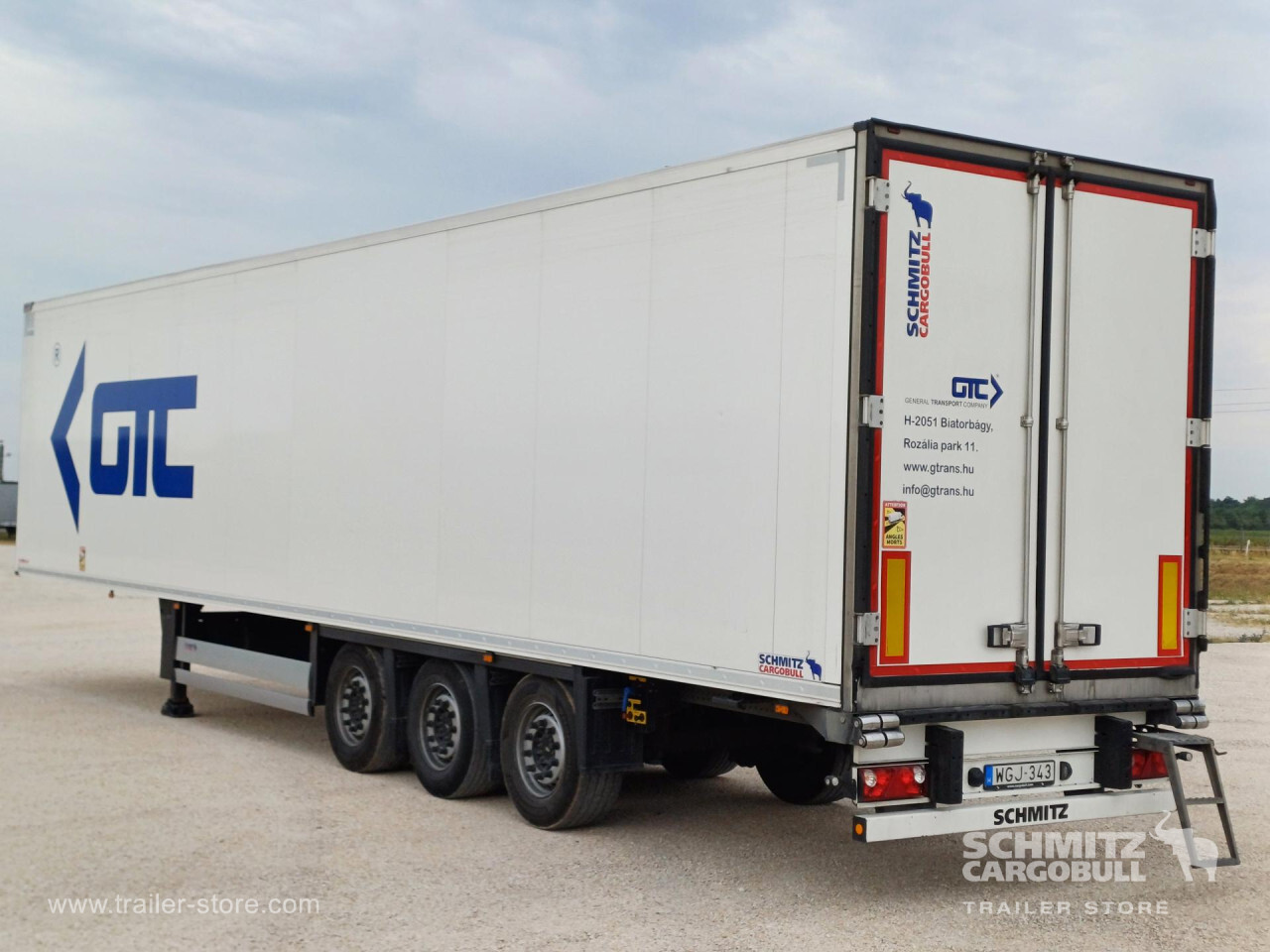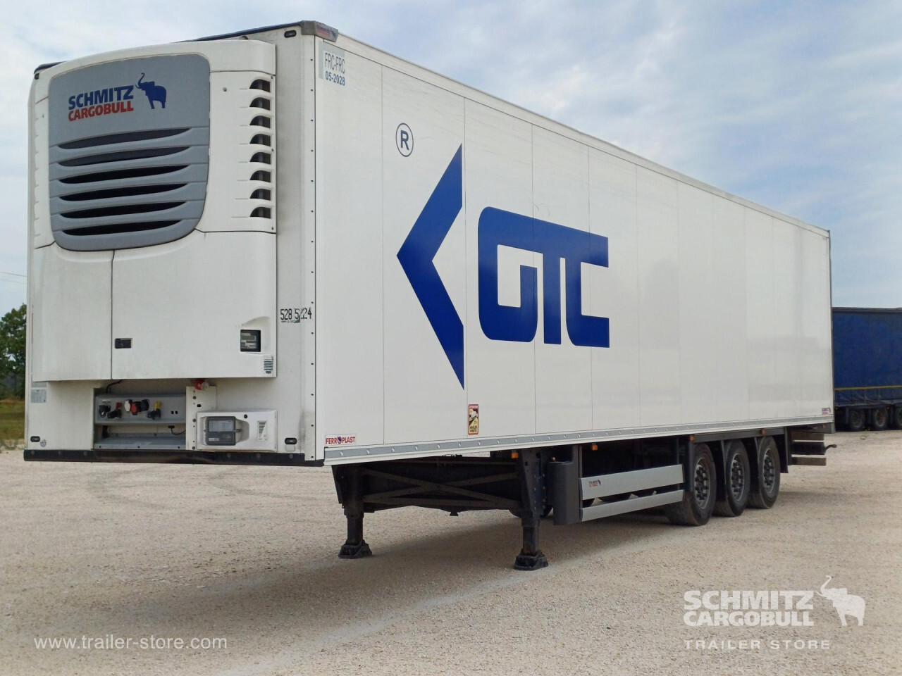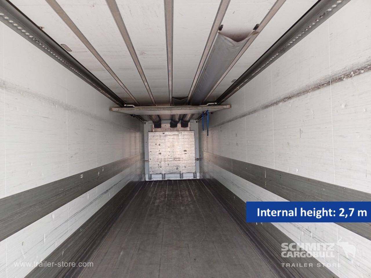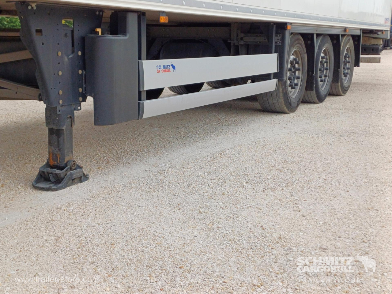 Remarks: **Safety**\\Rear underrun, Antilock Braking System ABS, Telematics system, Tyre pressure control\\\\**Interior**\\ISO partition wall without ventilators, Temperature recorder\\\\**Exterior**\\Air suspension, Lift axle front, Self-levelling suspension, Spare wheel carrier, 1x15 and 2x7 pin plug, Antispray, Customs seal, Dynamic ramp protection (DRP)\\\\**Cargo securing**\\DIN EN 12642 (code XL) certificate\\\\**Brake system**\\Disc brake, Schmitz ROTOS\\\\**Floor**\\Aluminum floor\\\\**Cooling unit**\\Schmitz Cargobull, Diesel/Elektro\\\\**Loading area**\\Length 13.403 mm, Width 2.460 mm, Height 2.700 mm, Volume 89 m³\\\\**Tyre sizes**\\ 385/55 R22.5 , 385/55 R22.5 , 385/55 R22.5\\\\**Other dimensions and weights**\\Wheel base: 7.600 mm\\\\----