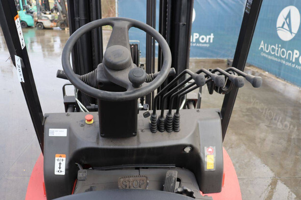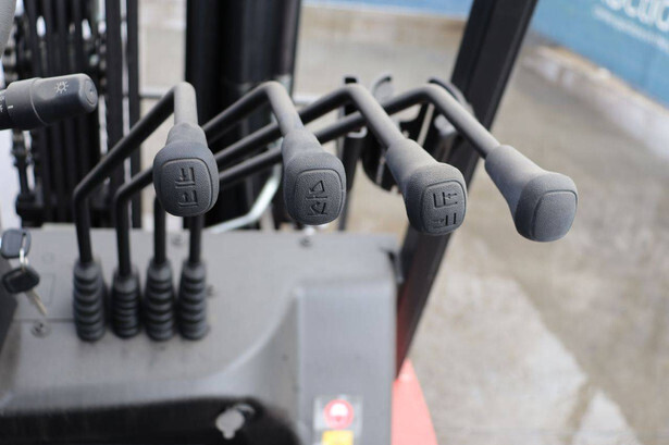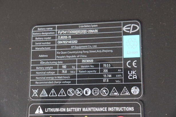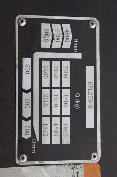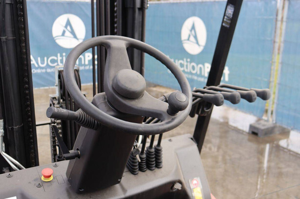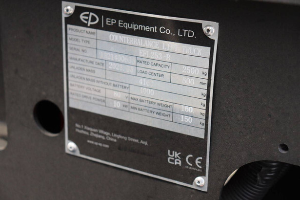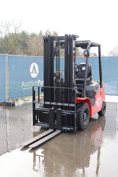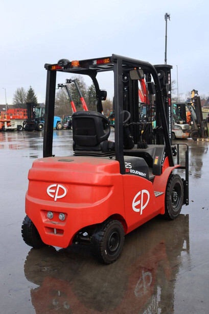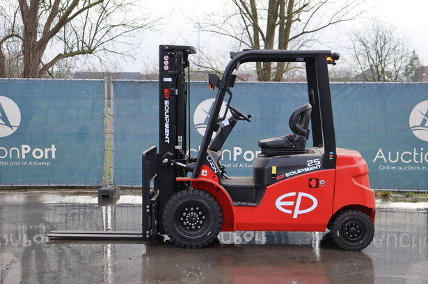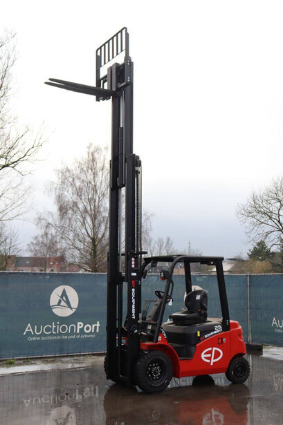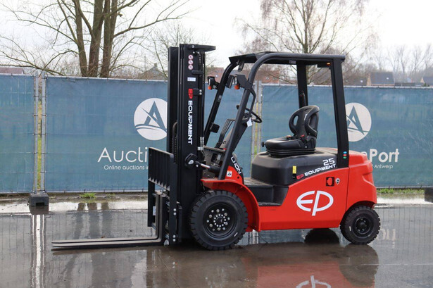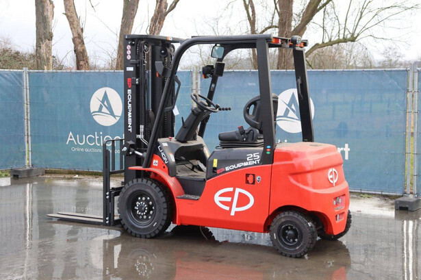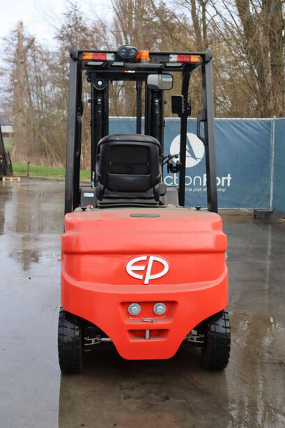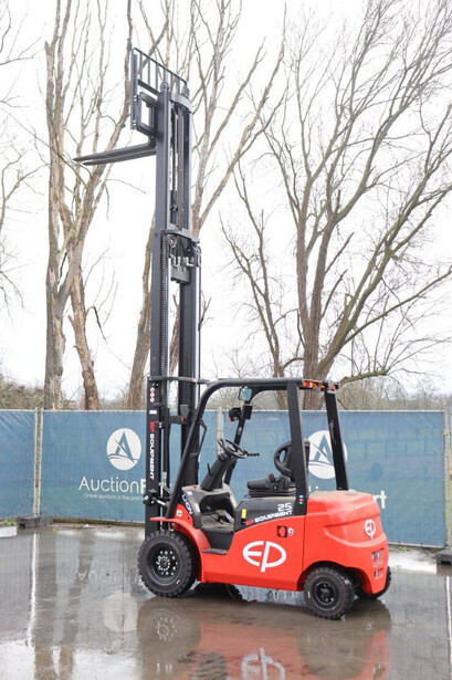 Brand: EP Equipment Type: EFL253-B Serial number: 1321400633 Year of construction: 2023 Fuel: Electric Mast type: Triplex Sideshift: Yes Lifting capacity: 2500 kg Lifting height: 4800 mm Reading operating hours: 4 h Machine weight: 4320 kg Tires: Solid tires Color: red