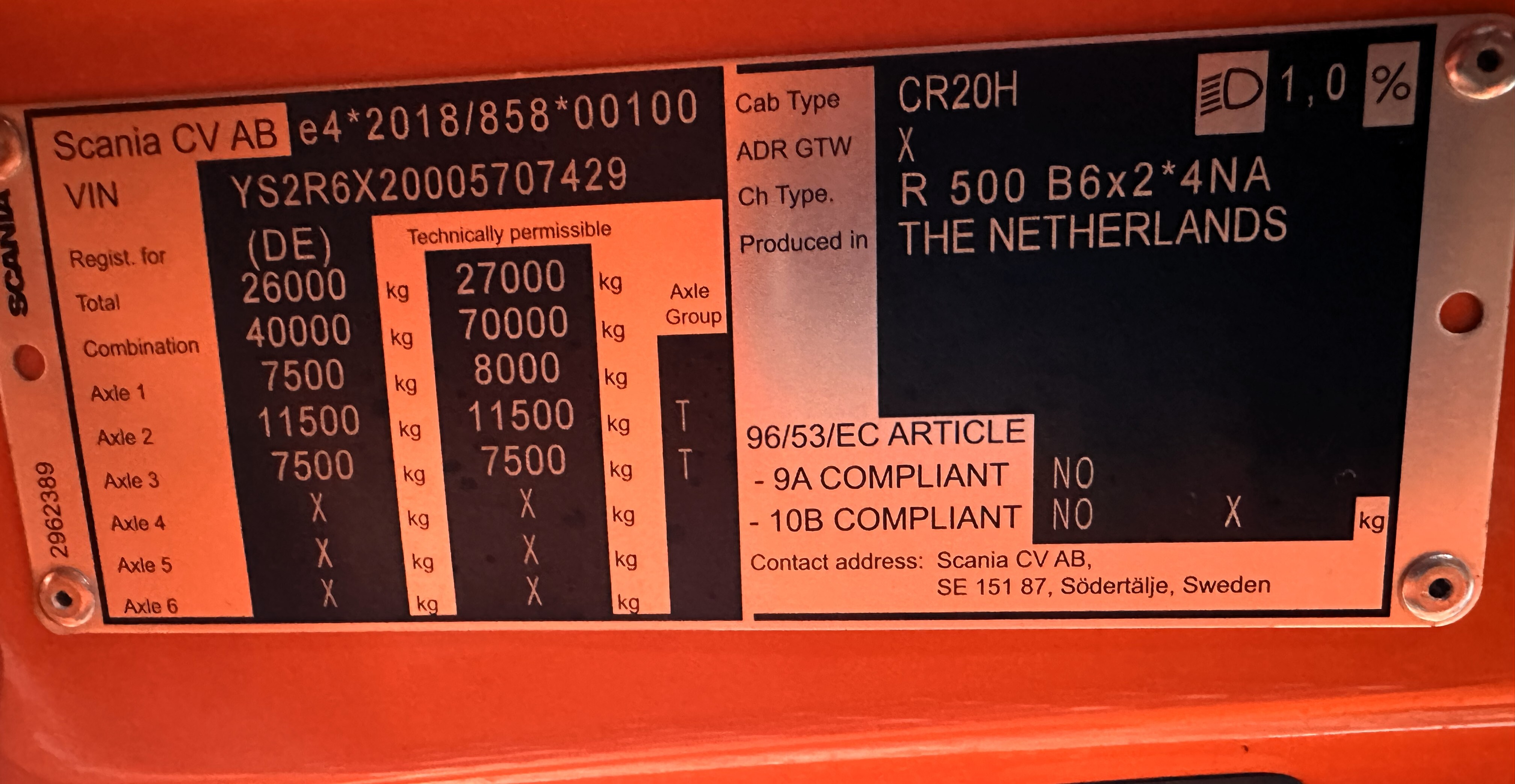 Equipment: Alloy wheels, air conditioning, refrigerator, automatic transmission, cruise control, USB port, differential lock, retarder, Scania infotainment system. Vehicle was under a full maintenance contract.