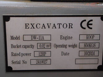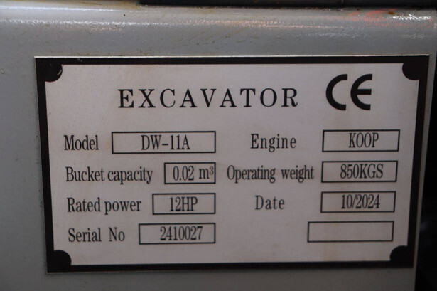 Type: DW-11A Serial number: 2410027 Year of construction: 2024 Fuel: Diesel Engine power: 12.0 HP Quick change: No Running gear: Tracks Machine weight: 850 kg Color: gray