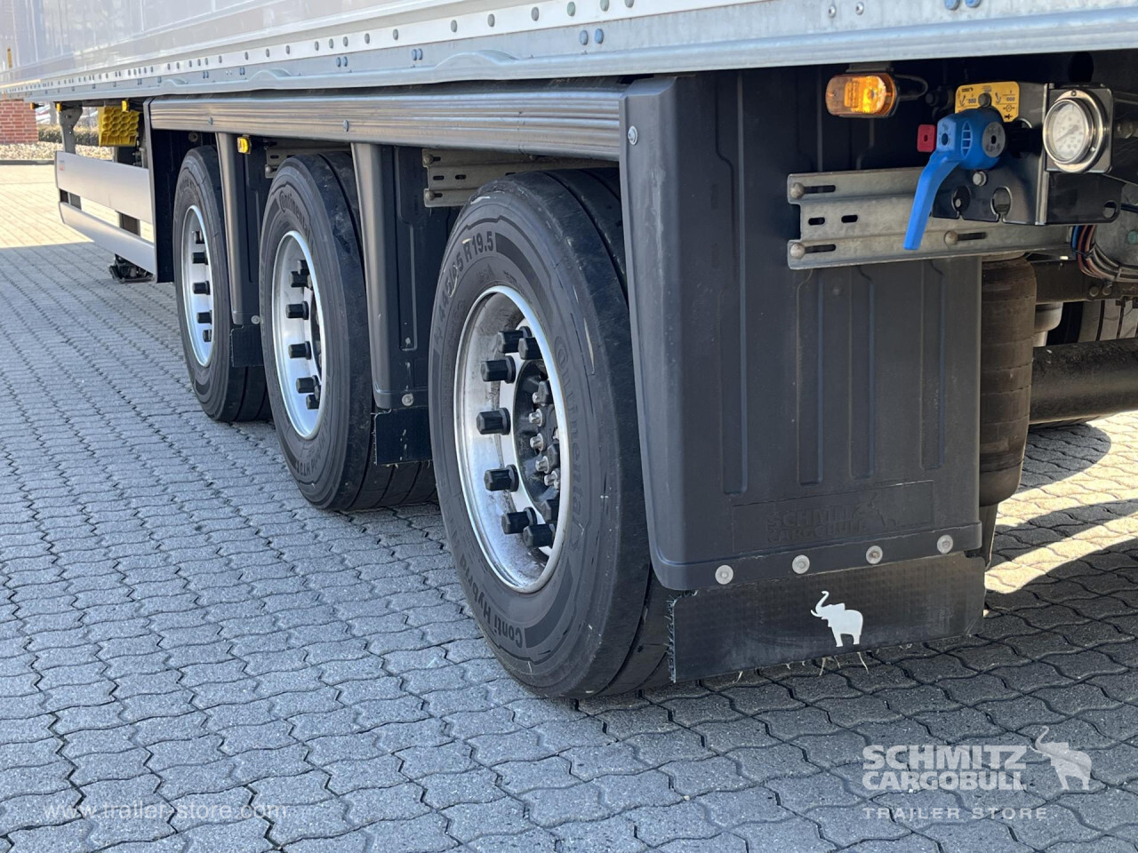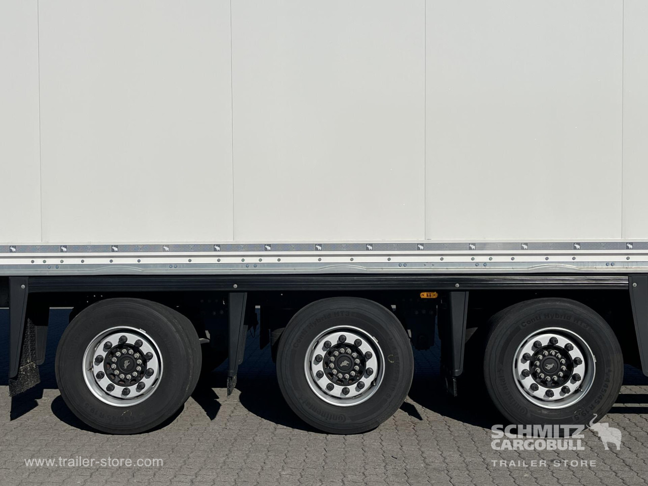Remarks: **Safety**\\Rear underrun, Antilock Braking System ABS, Telematics system\\\\**Interior**\\Double deck without beams\\\\**Exterior**\\Air suspension, Ferry lashings, Bolted chassis, Roller shutter door, 1x15 and 2x7 pin plug, Antispray\\\\**Further equipment**\\Schlüssellochblech zum Transport von hängender Kleidung\\\\**Cargo securing**\\Cargo securing with certificate, DIN EN 12642 (code XL) certificate\\\\**Brake system**\\Disc brake, Schmitz ROTOS\\\\**Floor**\\Wooden floor\\\\**Loading area**\\Length 15.005 mm, Width 2.480 mm, Height 2.900 mm, Volume 107 m³\\\\**Tyre sizes**\\1. Achse: 445/45 R19.5 , Tread depth: 12 mm / 12 mm, 2. Achse: 445/45 R19.5 , Tread depth: 13 mm / 13 mm, 3. Achse: 445/45 R19.5 , Tread depth: 12 mm / 12 mm\\\\**Other dimensions and weights**\\Payload: 27.080 kg, GVW: 36.000 kg\\\\----