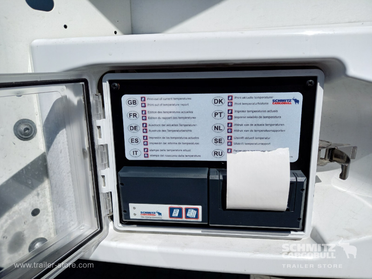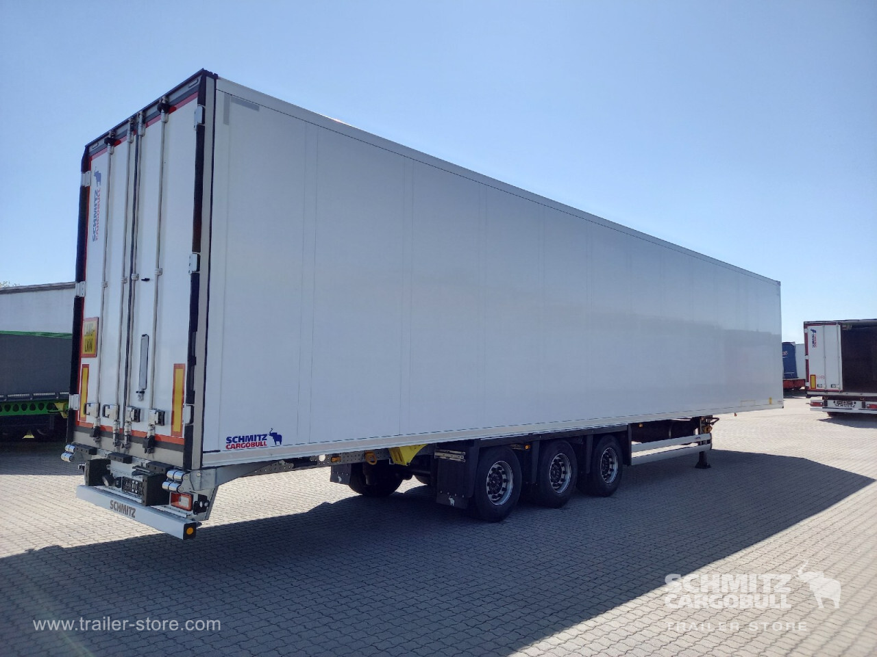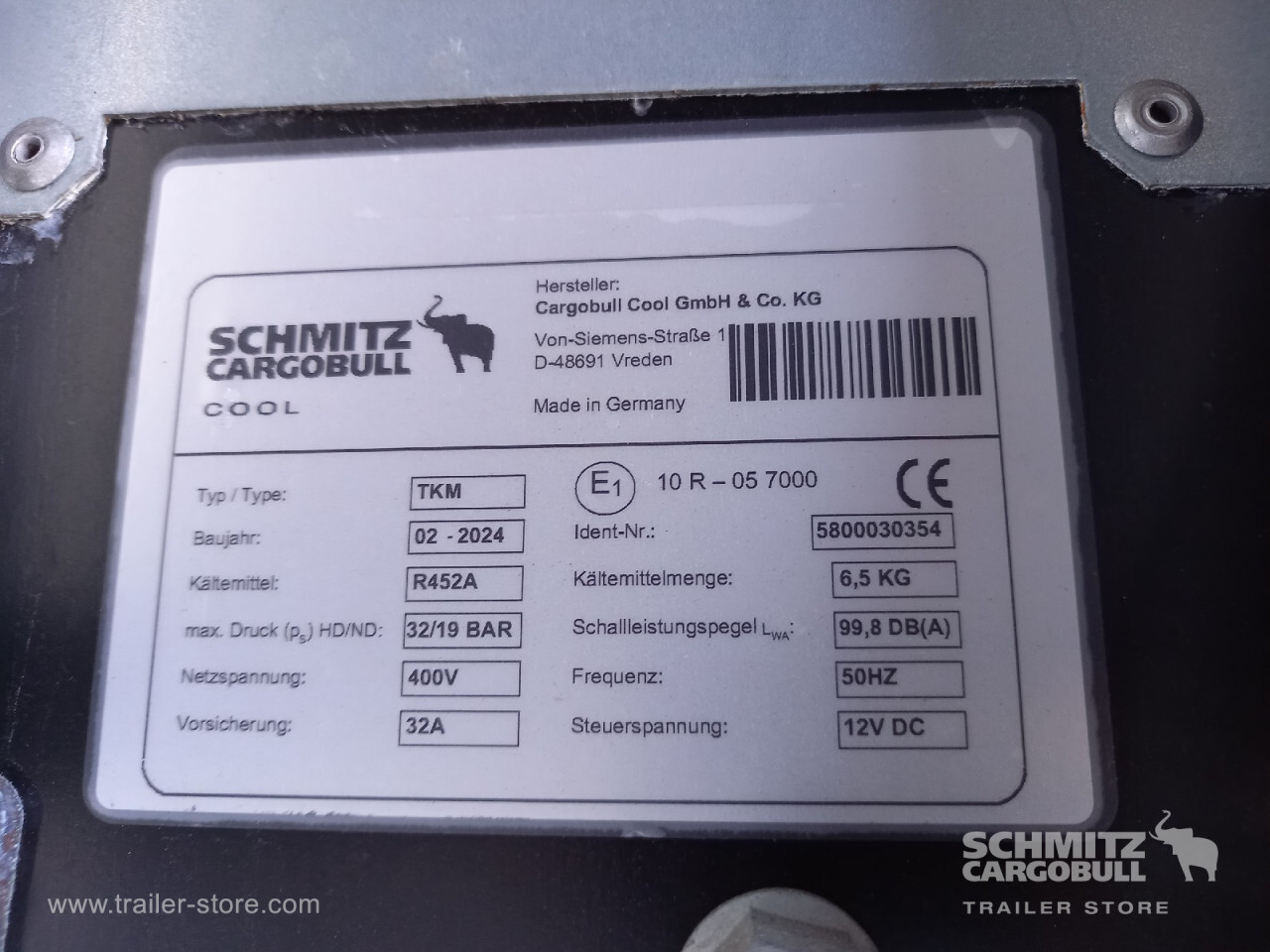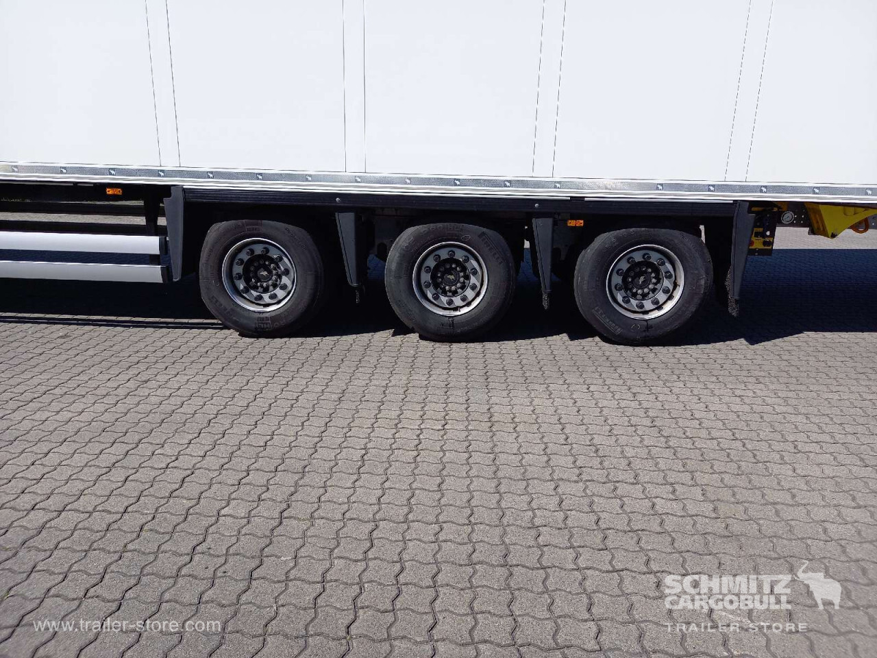 Remarks: **Safety**\\Rear underrun, Antilock Braking System ABS, Telematics system\\\\**Comfort**\\Roof ventilation with valve\\\\**Interior**\\Temperature recorder, Multifunctional floor\\\\**Exterior**\\Air suspension, Ferry lashings, Bolted chassis, 1x15 and 2x7 pin plug, Antispray, International customs seals\\\\**Cargo securing**\\Cargo securing with certificate, DIN EN 12642 (code XL) certificate, Load securing rail\\\\**Brake system**\\Disc brake, Schmitz ROTOS\\\\**Cooling unit**\\Schmitz Cargobull S.CU V 2.0, Diesel/Elektro, 43 Operating hours Diesel\\\\**Loading area**\\Length 14.703 mm, Width 2.490 mm, Height 2.850 mm, Volume 104 m³\\\\**Tyre sizes**\\1. Achse: 445/45 R19.5 , Tread depth: 12 mm / 12 mm, 2. Achse: 445/45 R19.5 , Tread depth: 12 mm / 12 mm, 3. Achse: 445/45 R19.5 , Tread depth: 12 mm / 12 mm\\\\**Other dimensions and weights**\\GVW: 39.000 kg\\\\----