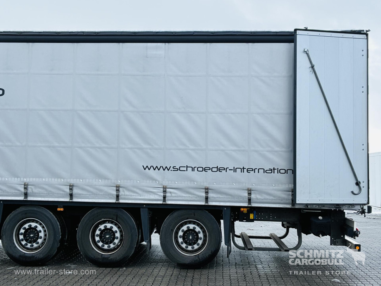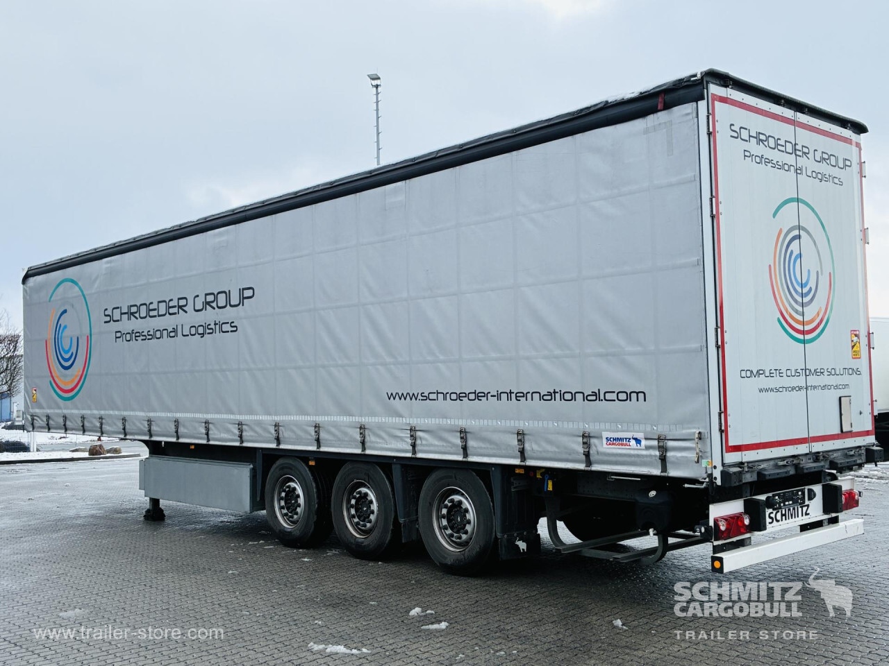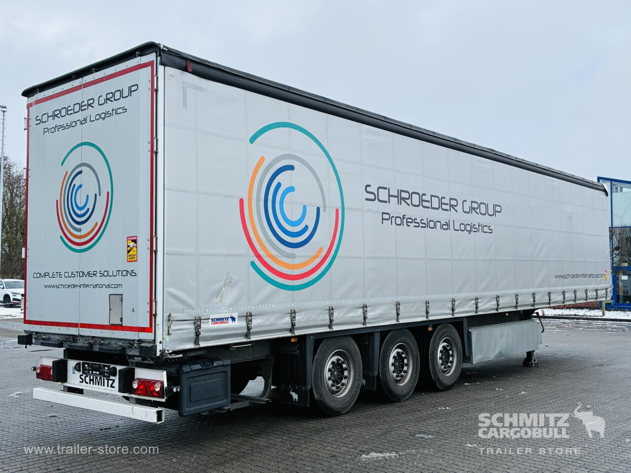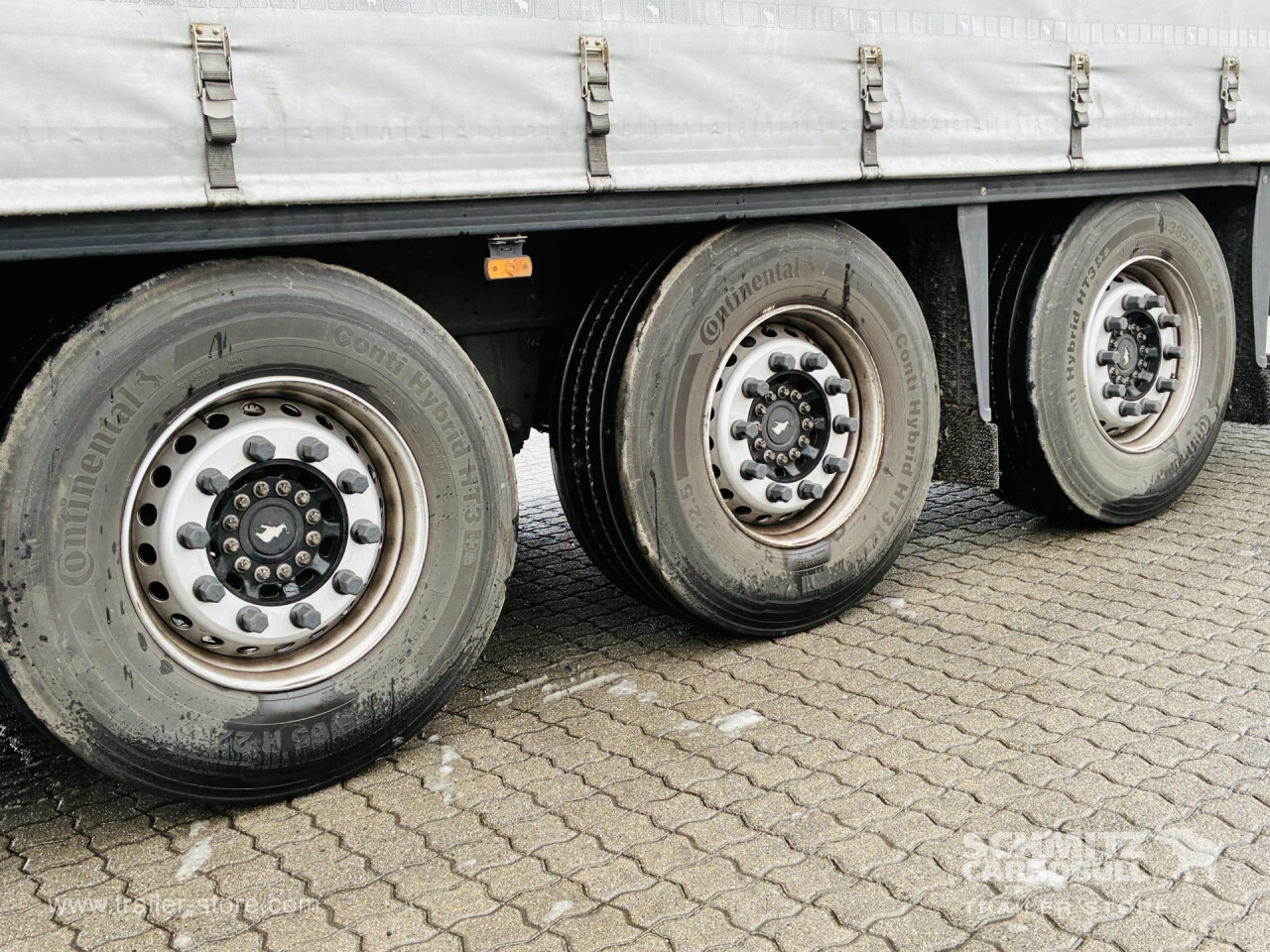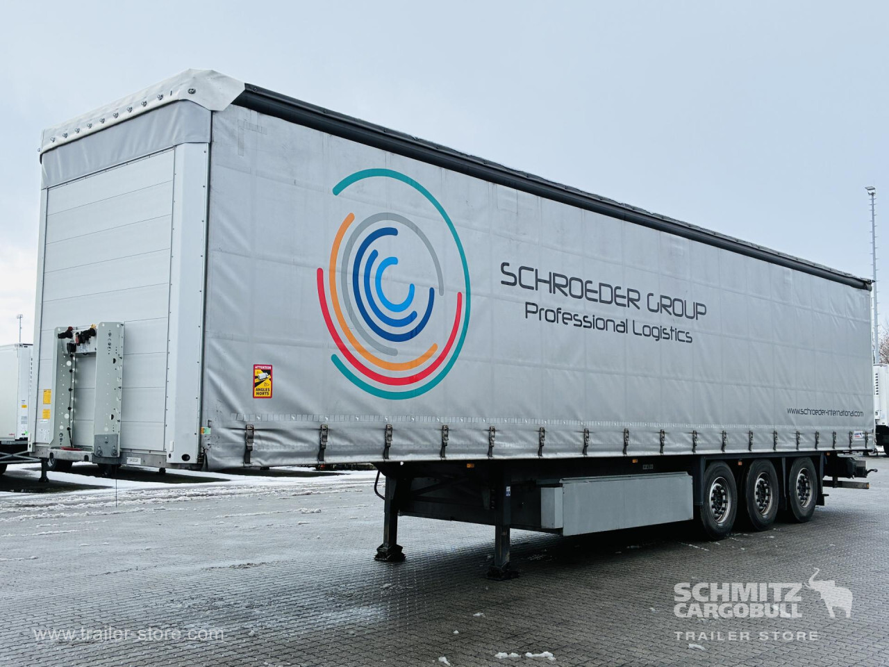 Remarks: **Safety**\\Rear underrun, Antilock Braking System ABS, Telematics system\\\\**Exterior**\\Air suspension, Lift axle front, Pallet box, Toolbox, Spare wheel carrier double, Bolted chassis, Gantry doors, Sliding roof, 1x15 and 2x7 pin plug, Antispray, Impact buffer\\\\**Cargo securing**\\Cargo securing with certificate, DIN EN 12642 (code XL) certificate, Beverage certificate, Punched load securing side rave, Aluminium slats\\\\**Brake system**\\Disc brake, Schmitz ROTOS\\\\**Floor**\\Wooden floor, Lashing rings in floor\\\\**Loading area**\\Length 13.620 mm, Width 2.480 mm, Height 2.780 mm, Volume 93 m³\\\\**Tyre sizes**\\1. Achse: 385/65 R22.5 , Tread depth: 13 mm / 13 mm, 2. Achse: 385/65 R22.5 , Tread depth: 14 mm / 11 mm, 3. Achse: 385/65 R22.5 , Tread depth: 13 mm / 11 mm\\\\**Other dimensions and weights**\\GVW: 39.000 kg\\\\----