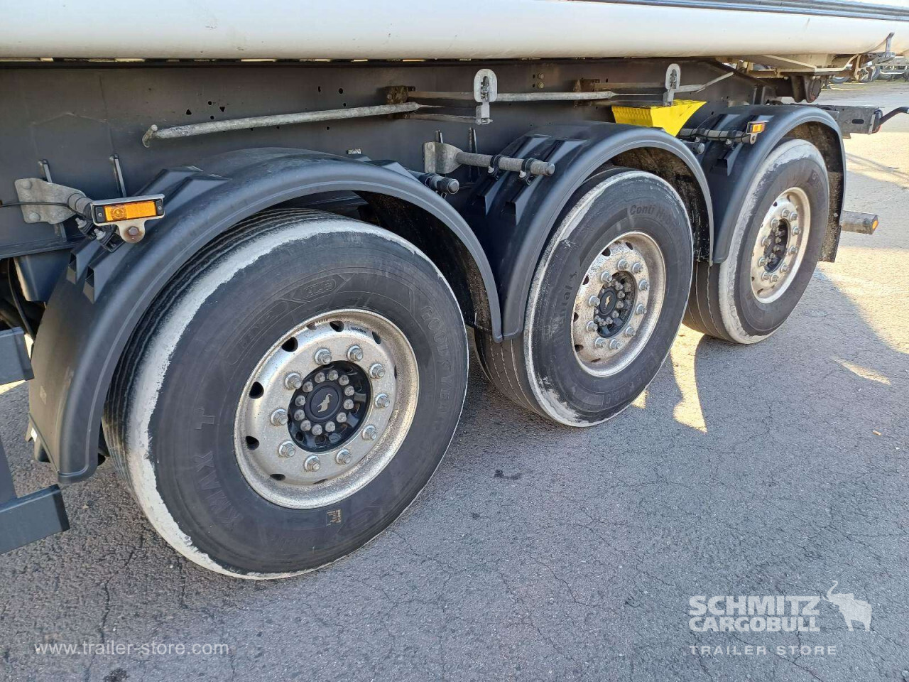 Remarks: **Safety**\\Hinged rear underrun, Antilock Braking System ABS, Brake wear indicator\\\\**Exterior**\\Air suspension, Lift axle front, Exterior pendulum tailgate, Grain chute, Roof rolling tarpaulin, Access platform, 1x15 and 2x7 pin plug, Antispray, Light alloy rims\\\\**Brake system**\\Disc brake, Schmitz ROTOS\\\\**Loading area**\\Length 9.807 mm, Width 2.440 mm, Height 2.200 mm, Volume 52 m³\\\\**Tyre sizes**\\1. Achse: 385/65 R22.5 , Tread depth: 7 mm / 9 mm, 2. Achse: 385/65 R22.5 , Tread depth: 8 mm / 12 mm, 3. Achse: 385/65 R22.5 , Tread depth: 10 mm / 10 mm\\\\**Other dimensions and weights**\\GVW: 36.000 kg\\\\----