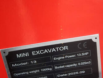 Brand: Captok Type: CK13 Year of construction: 2025 Fuel: Diesel Engine power: 13.5 HP Quick change: No Running gear: Tracks Machine weight: 1000 kg Color: red