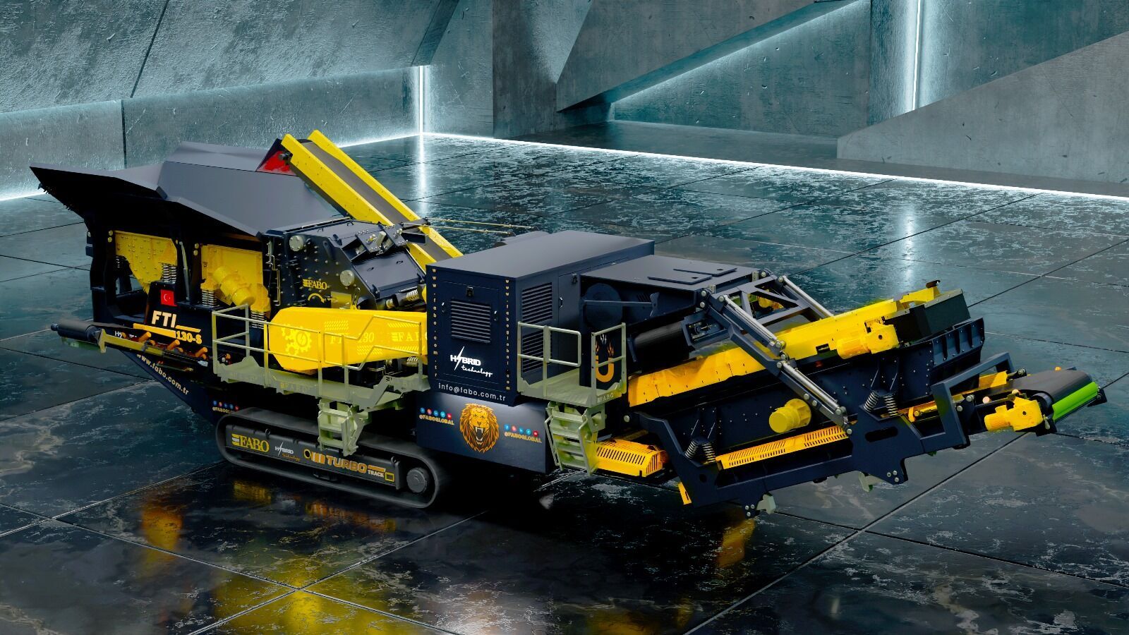Le concasseur à percussion sur chenilles Fabo FTI-130s est un système mobile complet qui se déplace sur des systèmes de chenilles à commande hydraulique à une vitesse de 1 km / h et combine un alimentateur grizzly vibré, un concasseur à percussion, des convoyeurs de stockage pliables, une unité de contrôle et un générateur électrique .