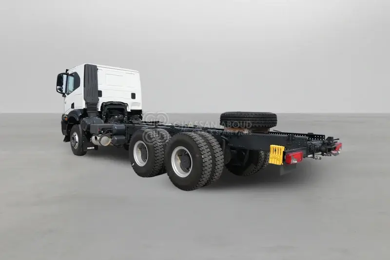Iveco T-WAY AT380T43H 6x4 R20 Tyres Chassis - Barcelona Stock Vehicle Code IAEB435001 Ownership Status New Vehicle Type Trucks Axle Configuration 6x4 Year 2025 Emission Euro 3 Steering LH Drive Horsepower 430 HP GVWR / Max Gross Weight 33.5 Tons Wheelbase (Mm) 4,200 Mm Dimension (L×W×H In Mm) 9,100 X 2,550 X 3,100