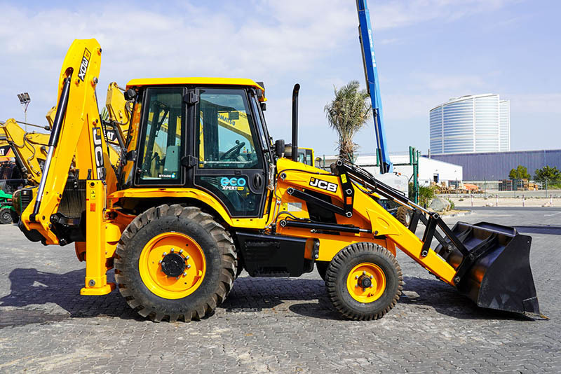 JCB Eco Xpert max, Stage 5, Turbo Charged Engine, 37 kW / 50 HP Engine Power, 4 Speed Manual Transmission, Enclosed Cab, 2WD, 1.1 Cu m GP Loader, 2.74 m Dump Height, 850 mm Backhoe Digging Bucket, 4.77 m Digging Depth, Side Shift, Air ride operator seat, and 10% Lower Fuel Consumption