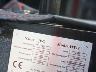 Brand: JPC Type: HT12 Year of construction: 2025 Fuel: Diesel Engine power: 12.0 HP Quick change: No Running gear: Tracks Machine weight: 1020 kg Color: red