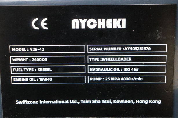 Brand: Nycheki Type: Y25-42 Serial number: AY505231876 Year of construction: Not known Fuel: Diesel Engine power: 45.0 kW Reading operating hours: 1 h Machine weight: 2400 kg Tires: Pneumatic tires Color: green