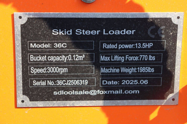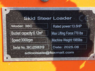 Type: 36C Year of construction: 2025 Serial number: 36CJ2506319 Fuel: Gasoline Engine power: 13.5 HP Reading operating hours: 2 h Machine weight: 900 kg Running gear: Tracks Color: orange