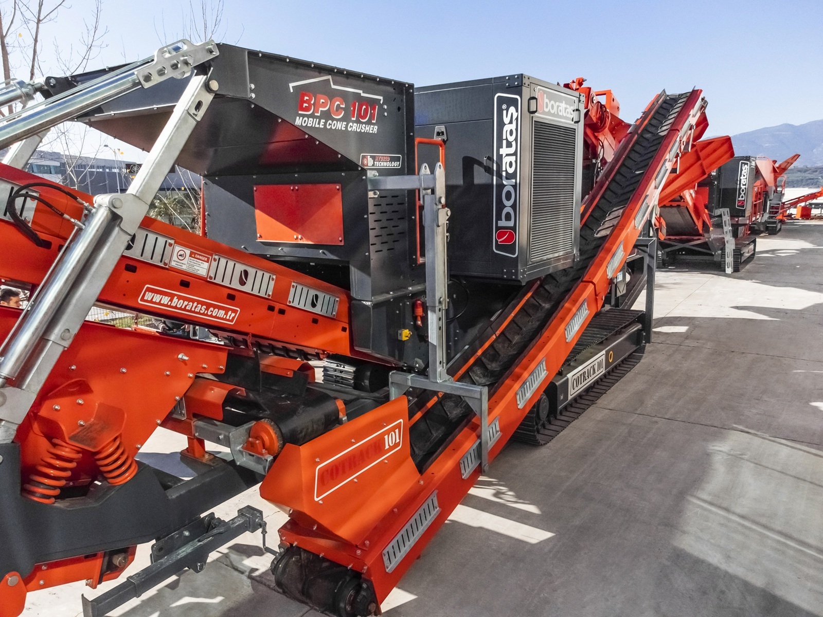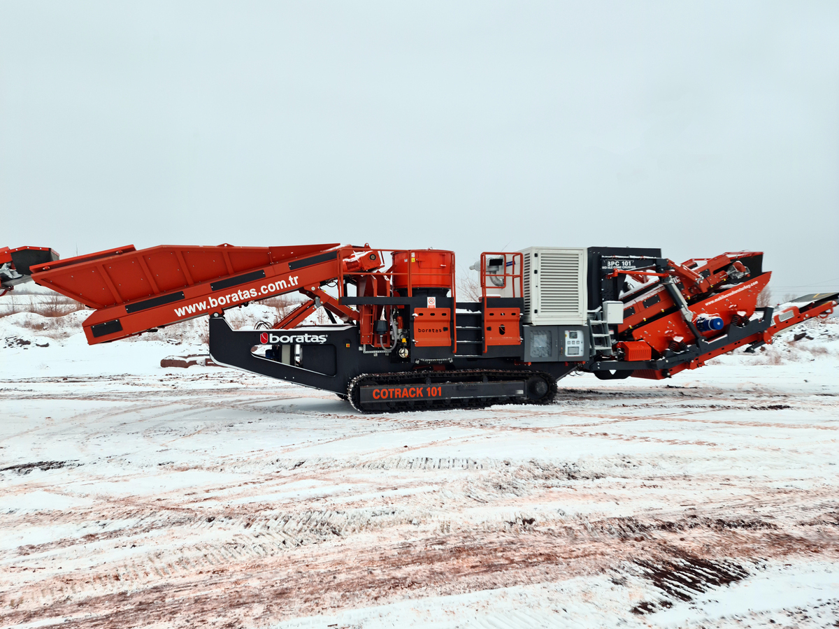 Boratas Cotrack Series Tracked Cone Crusher BPC100-S is a compact cone crushing and screening plant designed for integrated material reduction and final sizing in demanding applications. Equipped with an onboard screening system, the BPC100-S delivers controlled product grading while maintaining the mobility, crushing performance, and reliability expected from the Cotrack series.