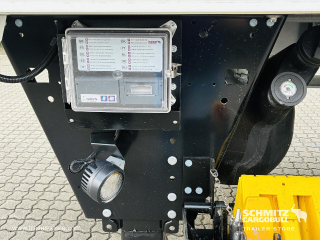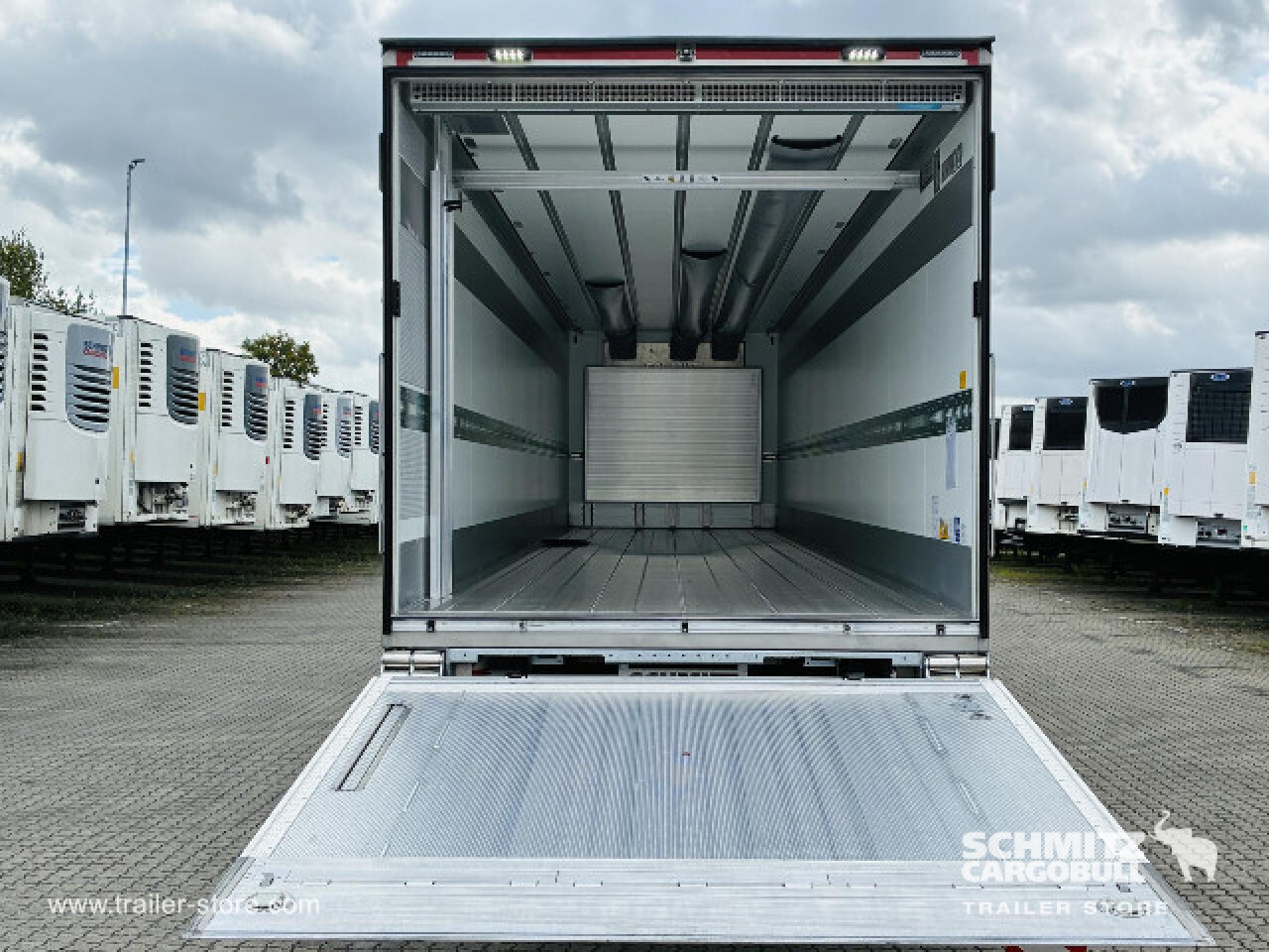 Remarks: **Safety**\\Rear underrun, Antilock Braking System ABS, Telematics system\\\\**Interior**\\Temperature recorder, Multifunctional floor\\\\**Exterior**\\Air suspension, Lift axle, Column aluminium taillift: BÄR-LBW Typ BC 2500 S4 24V m. EG-UFS Plattf.BAplan50VL 2410 mm h m.autom.Bodenn., Central lubrication: BEKAMAX für Zwangslenkung und Ladebordwand, Toolbox, Command steering, 1x15 and 2x7 pin plug, Antispray, Dynamic ramp protection (DRP)\\\\**Cargo securing**\\Load securing rail\\\\**Brake system**\\Disc brake, Schmitz Cargobull\\\\**Floor**\\Aluminum floor\\\\**Wand**\\Stirnwand verstärkt\\\\**Wall**\\Frontwall recess for cooling, Wall thickness45 mm\\\\**Cooling unit**\\Schmitz Cargobull S.CU dc85, Diesel/Elektro\\\\**Loading area**\\Length 11.043 mm, Width 2.490 mm, Height 2.350 mm, Volume 64 m³\\\\**Tyre sizes**\\1. Achse: 385/65 R22.5 , Tread depth: 15 mm / 15 mm, 2. Achse: 385/65 R22.5 , Tread depth: 15 mm / 15 mm\\\\**Other dimensions and weights**\\Payload: 22.853 kg, GVW: 32.000 kg\\\\----