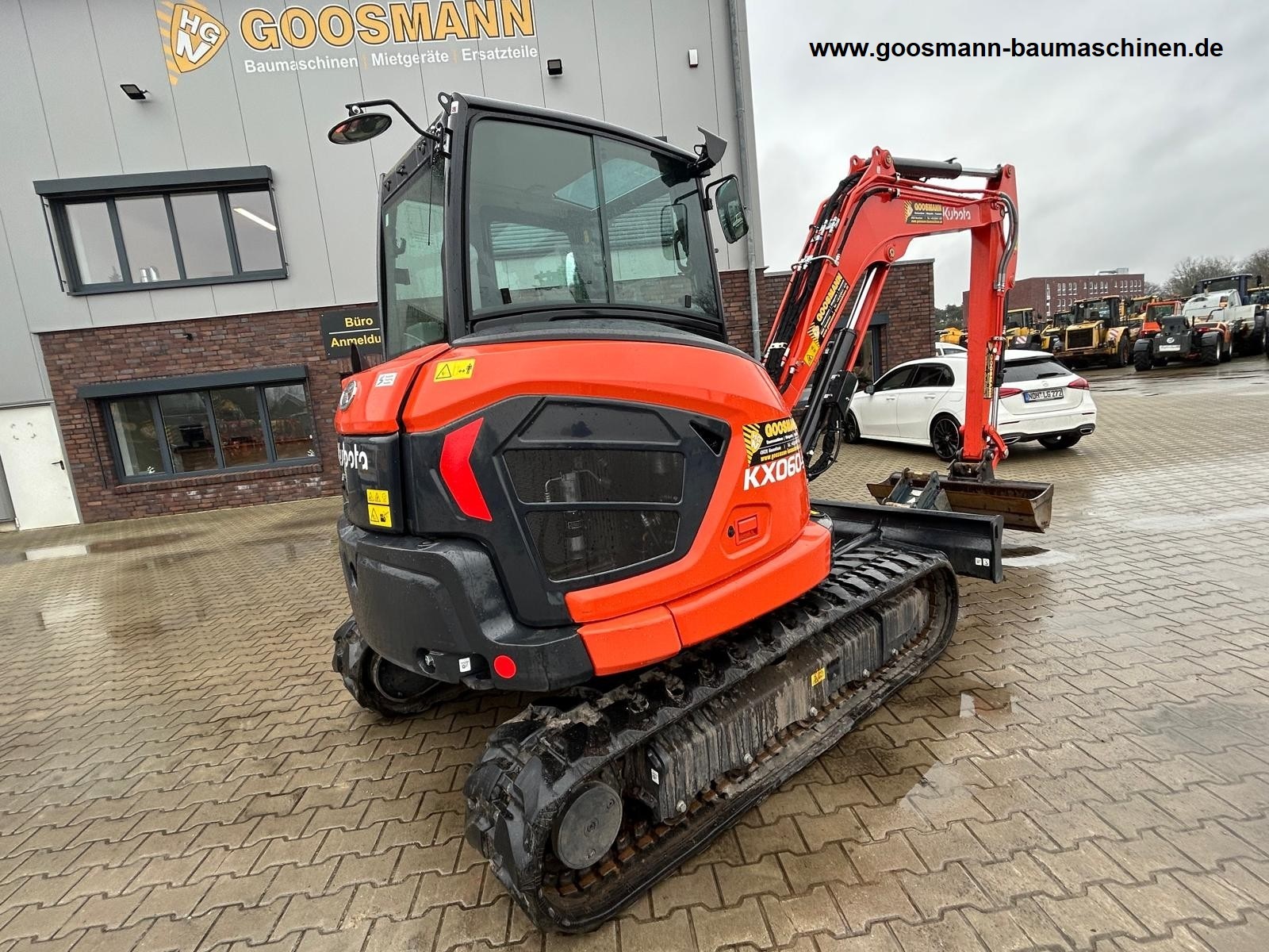 Kubota KX060-5 CE machine, air conditioning, long dipper stick, rubber tracks, blade, rotary and grapple hydraulics, backhoe bucket, ditch cleaning bucket, quick coupler Year of manufacture 2023. Operating hours 81.6 (as of 30.1.25).