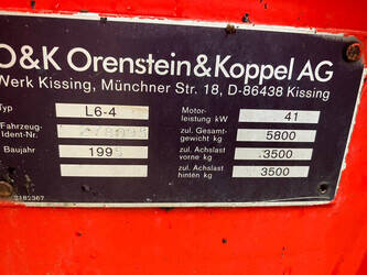 Brand: O&K Type: L6 Serial number: 278095 Year of construction: Not known Fuel: Diesel Operating hours read: Not known Machine weight: 5800 kg Tires: Pneumatic tires Color: orange