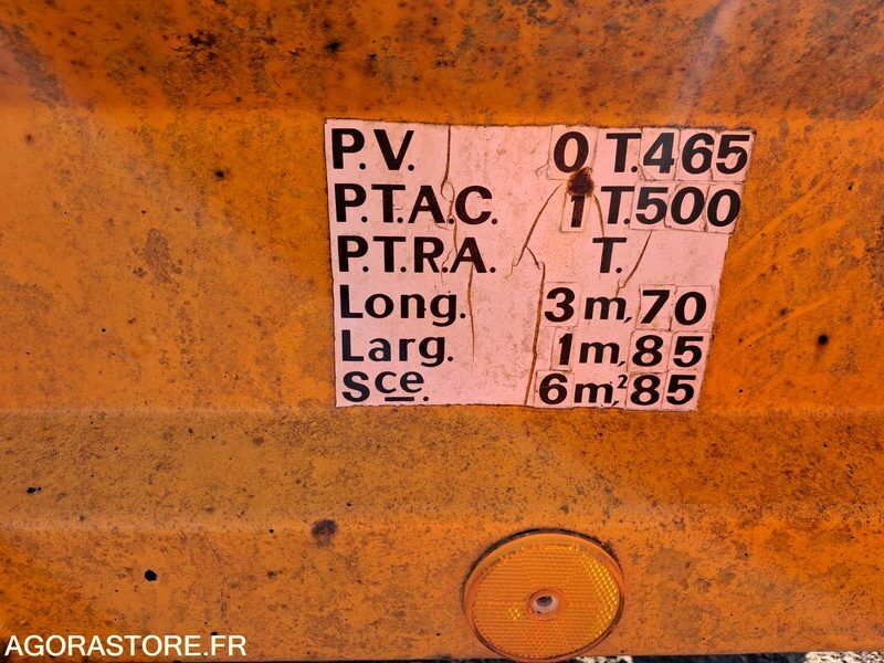 FR: Date et lieu de visite: SERVICES TECHNIQUES - RUE ALBERT-RENE BIOTTEAU - MONTJEAN SUR LOIRE - 49570 MAUGES SUR LOIRE -DU LUNDI AU VENDREDI DE 8H A 12H ET DE 13H30 A 16H Etat général: PLANCHER EN MAUVAIS ETAT ECLAIRAGE A REVOIR IMPORTANT: VENDUE EN L'ETAT Caractéristiques techniques: LONGUEUR 3M70 LARGEUR 1M85 PTAC 1T500 Type produit: REMORQUE PORTE ENGIN RAMPE DE CHARGEMENT NON DISSOCIABLE PLANCHER BOIS COULEUR JAUNE
