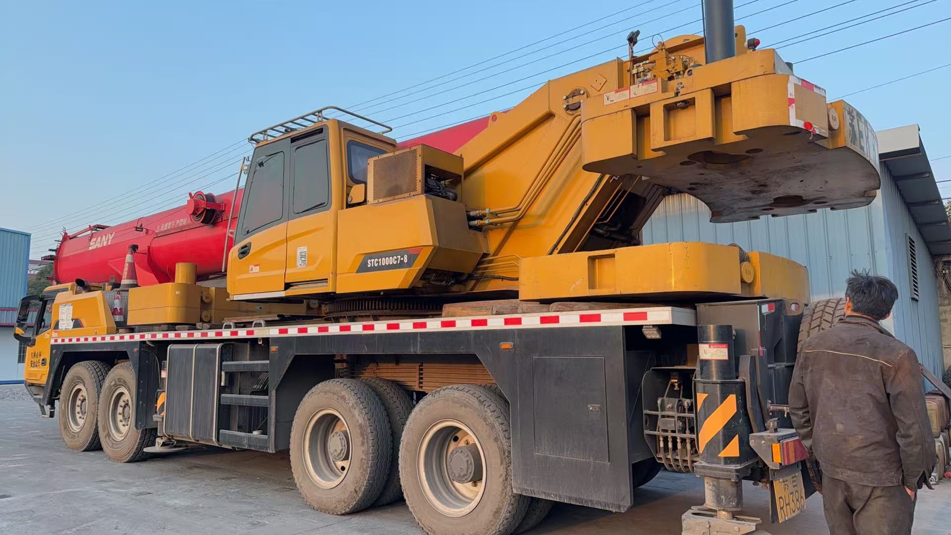 Well Maintained Used SANY STC1000C7-8 100 Ton Crane This is a used SANY STC1000C7-8 100-ton truck crane in good working condition. It is a high-performance heavy-duty crane with a 7-section high-strength main boom, strong lifting performance, stable structure, and reliable quality. It is widely used in construction, bridge erection, wind power installation, equipment hoisting, and other engineering projects.