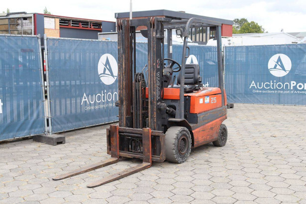 Merk: Toyota Type: 25 Serienummer: SS557A662 Brandstof: Elektrisch Mast type: Triplex Sideshift: Ja Hefcapaciteit: 2500 kg Hefhoogte: 4700 mm Eigen gewicht machine: 4700 kg Banden: Volle banden Kleur: oranje